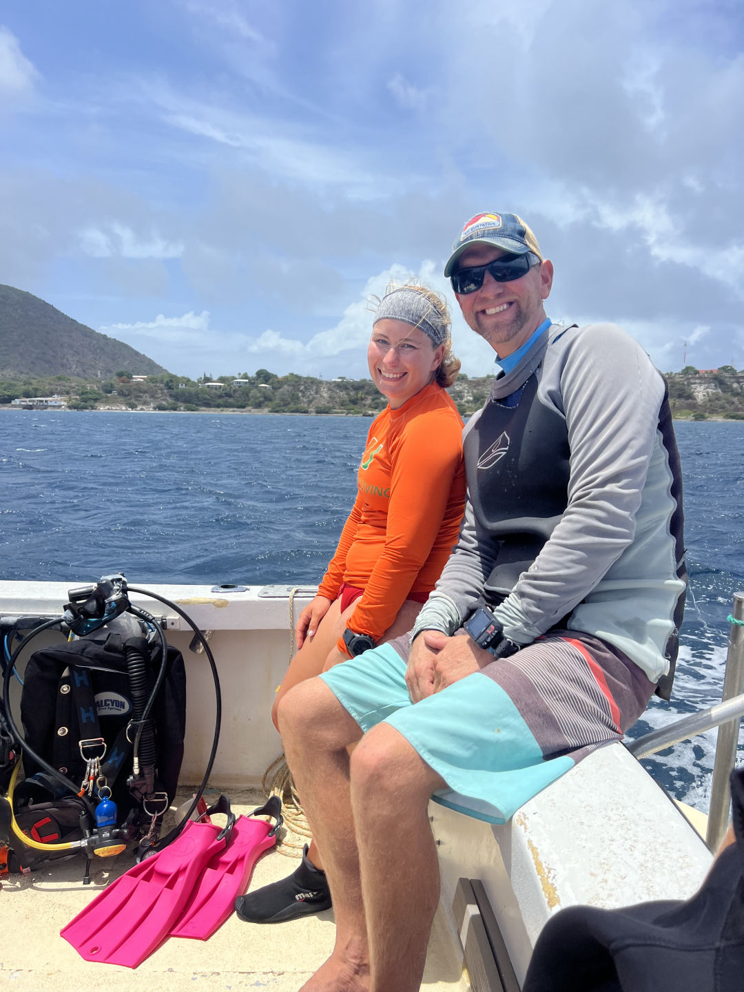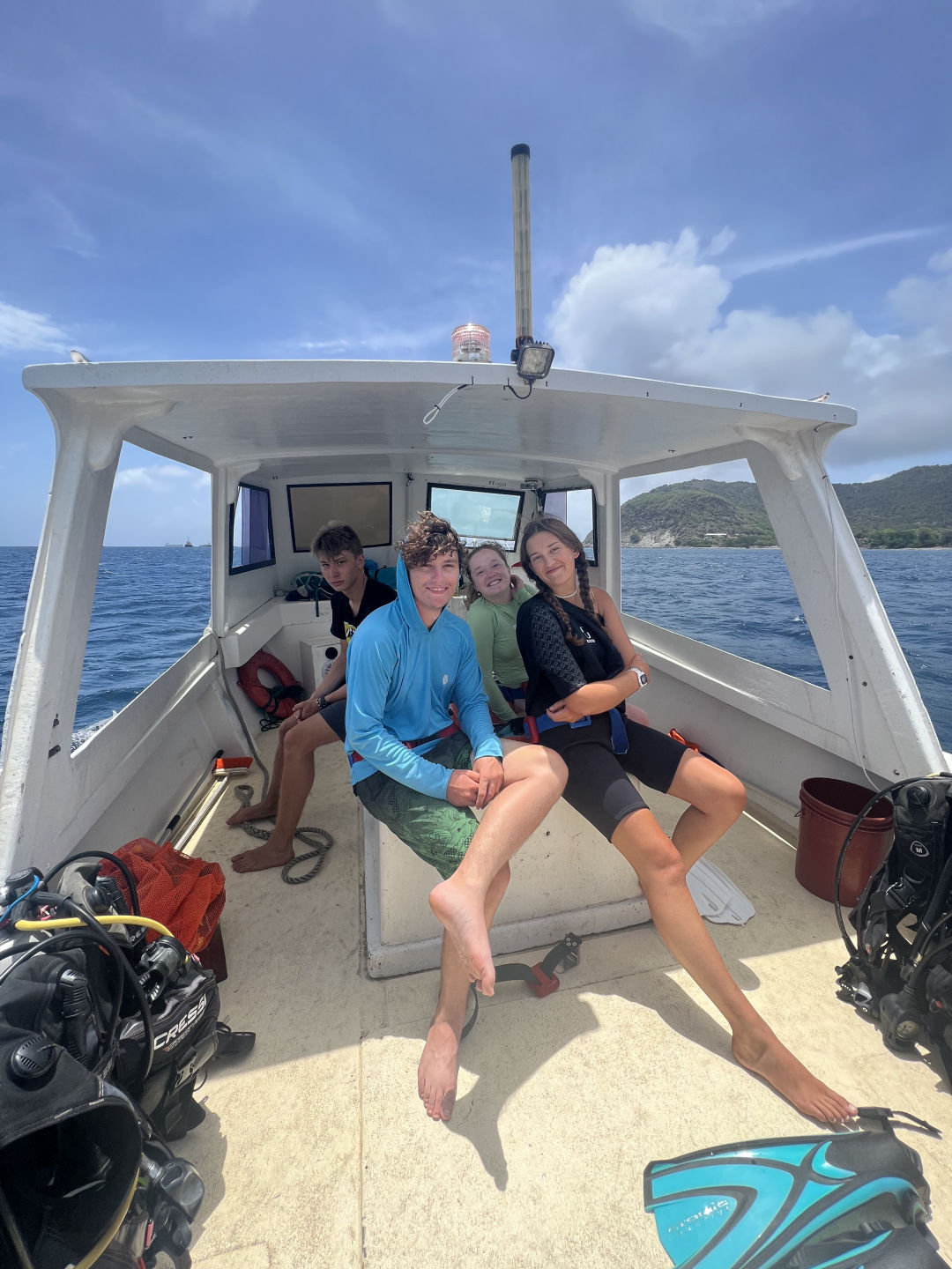 We started our day in Statia by splitting our crew into two groups, the open-water divers and the advanced open-water divers. The open-water divers went scuba diving early in the morning while the other group got to go to shore and have breakfast; they also explored the island and saw some amazing views of the bay from the upper part of the island. Around noon the groups switched, and the advanced divers completed their deep dive and saw some amazing shipwrecks that were full of life. During this time, the open water divers got their shore time. Some went hiking, while others just explored the island and got food. At the end of the day, the whole crew got together for dinner and celebrated Maddie’s birthday! We had a great time and finished up the night by getting the boat ready for our sail tomorrow morning to Nevis.