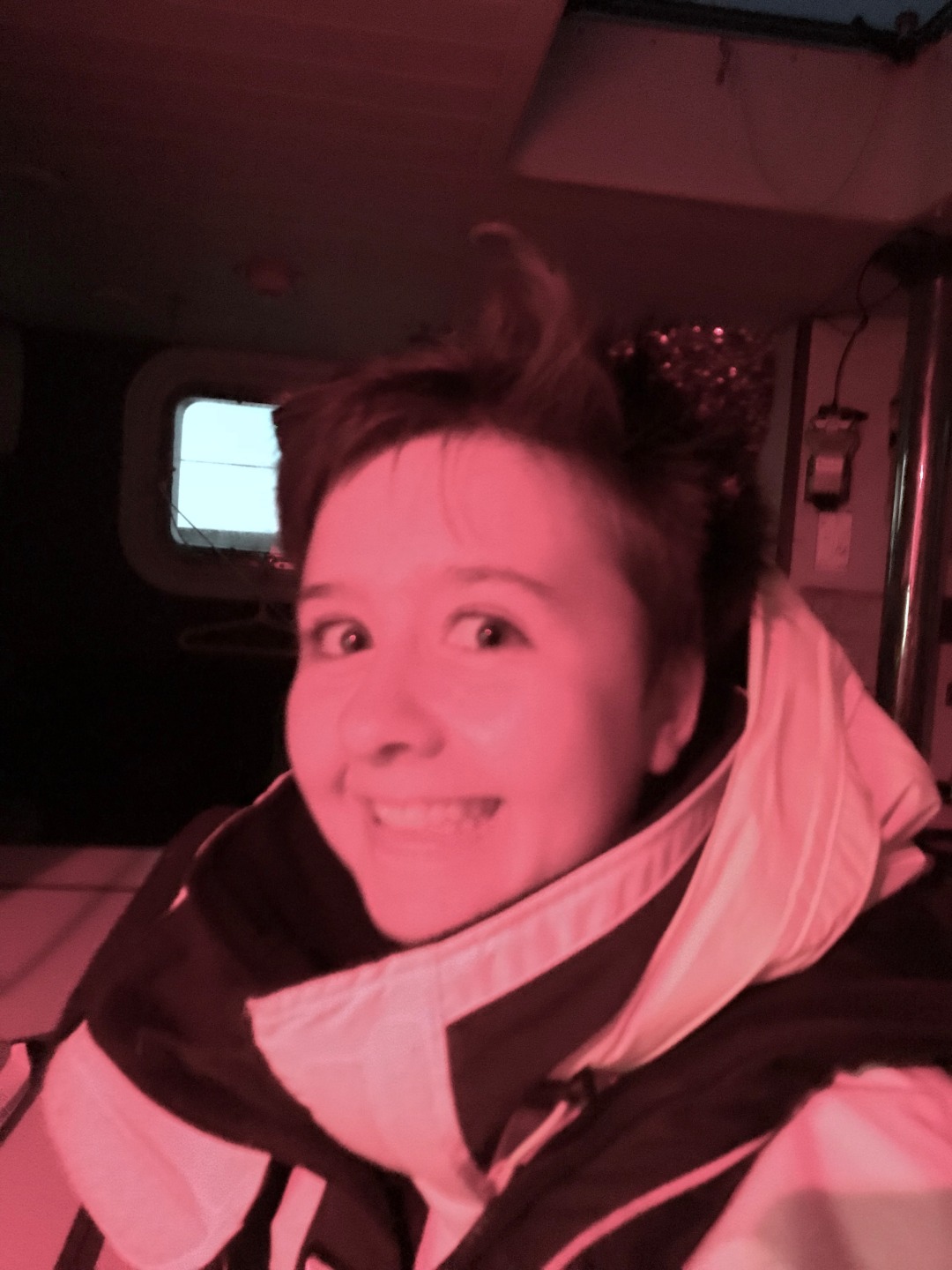 Happy Halloween! As far as spooks go, today has been rather uneventful. But life is still as wonderful as ever on Argo. We saw dolphins, had delicious food, and after what seemed like an age, saw the sun. It’s amazing how far a little sun can go in lifting low, puke-sodden spirits; it’s like having a cheery crew member come out of hibernation. We’re all exhausted, and the plague has been sweeping through the belly of Argo, but good music and some even better cornbread have fixed that today. Pro Tip: Add honey and hot sauce to your cornbread if you’re looking to spice up an otherwise ordinary day. Now we’re all settling down for our nightly routine of sleeping an extra five minutes, cramming for tests, and gorging upon way too many midnight snacks. But that could just be me. While today may not have been the most hair-raising of adventures, it was still the sort of golden day you can only find on Argo.