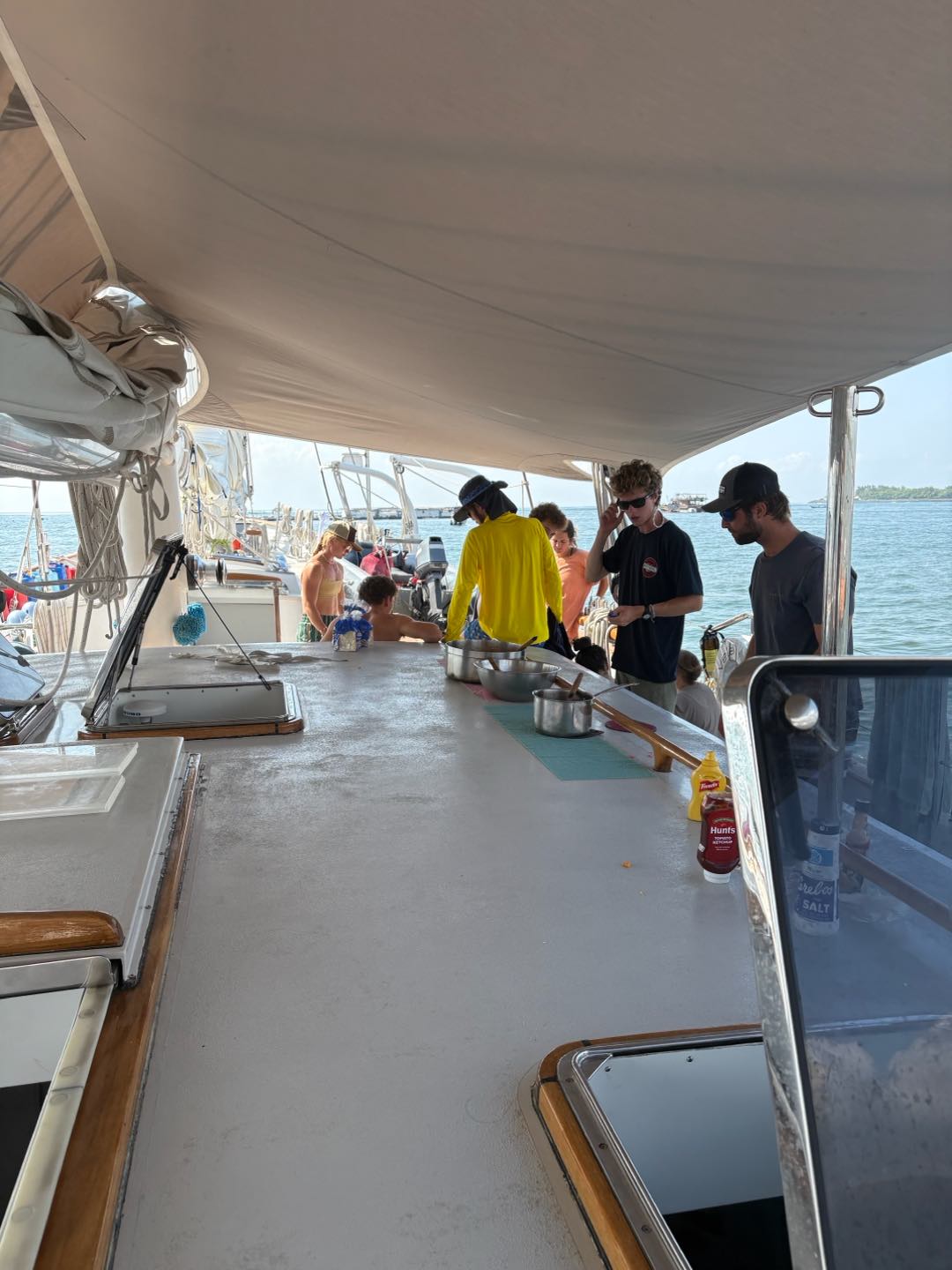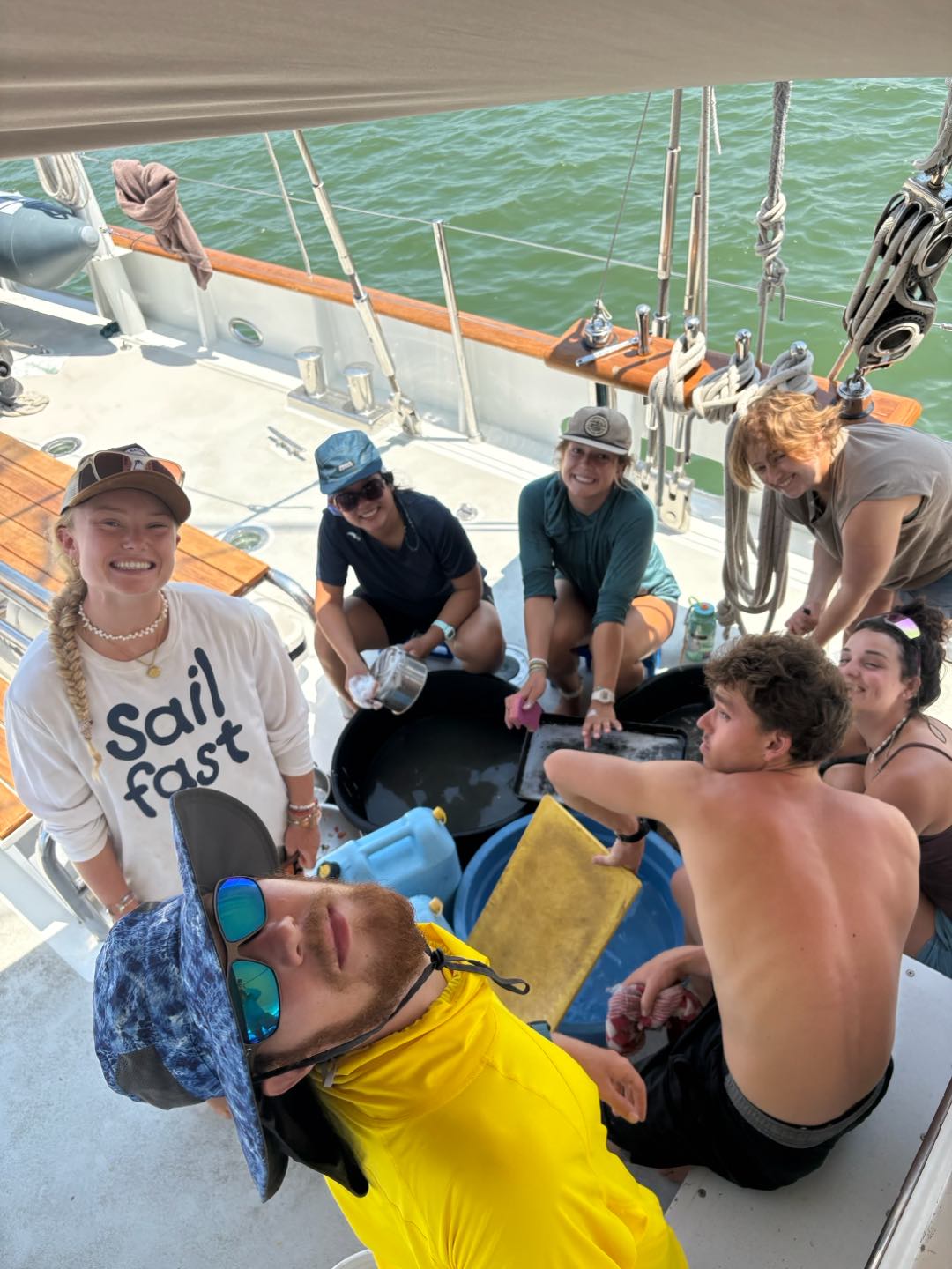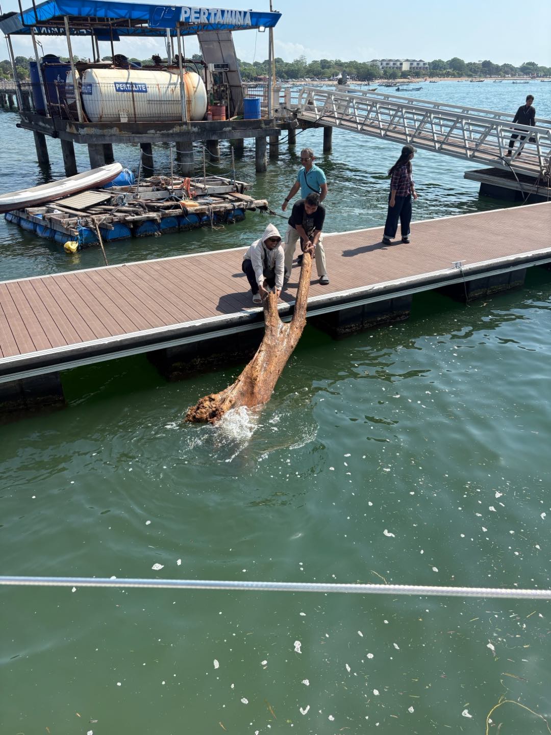 But before this, today started with a very eventful morning, headed up by getting some visits from the ever-elusive and all-powerful Indonesian Customs/Immigration agents. We were cleared without issue and even got some help from them with removing a very dangerous log (with photo evidence). After this, we finished up the last remaining parts of our passage preparation, including but not limited to sending Riley up the mast once again. We had a lovely panini lunch, and then quickly got underway! It was a scenic route out of the bay and along the southwestern tip of Bali. We think we even saw a young whale along the way. Today was also when new watch teams got together, making this passage to Christmas Island even more exciting.