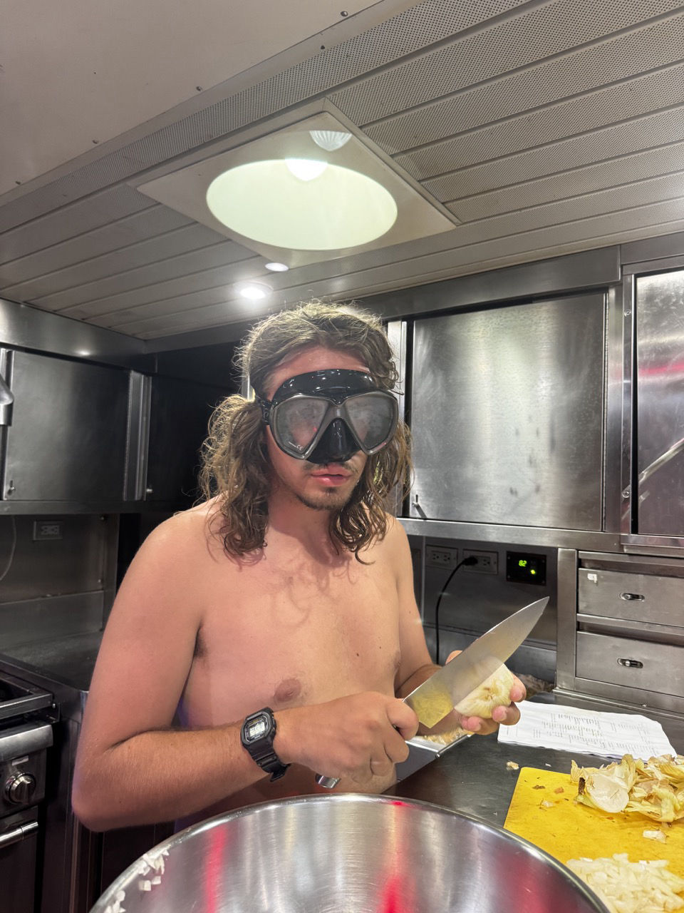 Starting our day off on a peaceful note, I woke everyone up with Blackbird by The Beatles. Seemed fitting with the rainy overcast and the chocolate muffin breakfast paired with it. Pro tip: don’t do laundry at night on a tropical island unless you want to wake up to all your clothes soaked and reeking of wet dog.