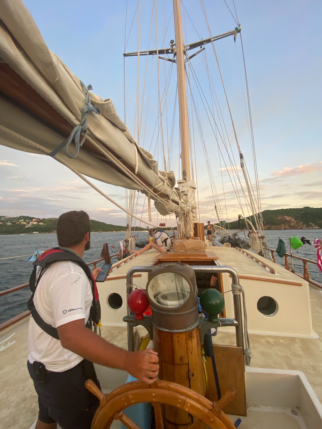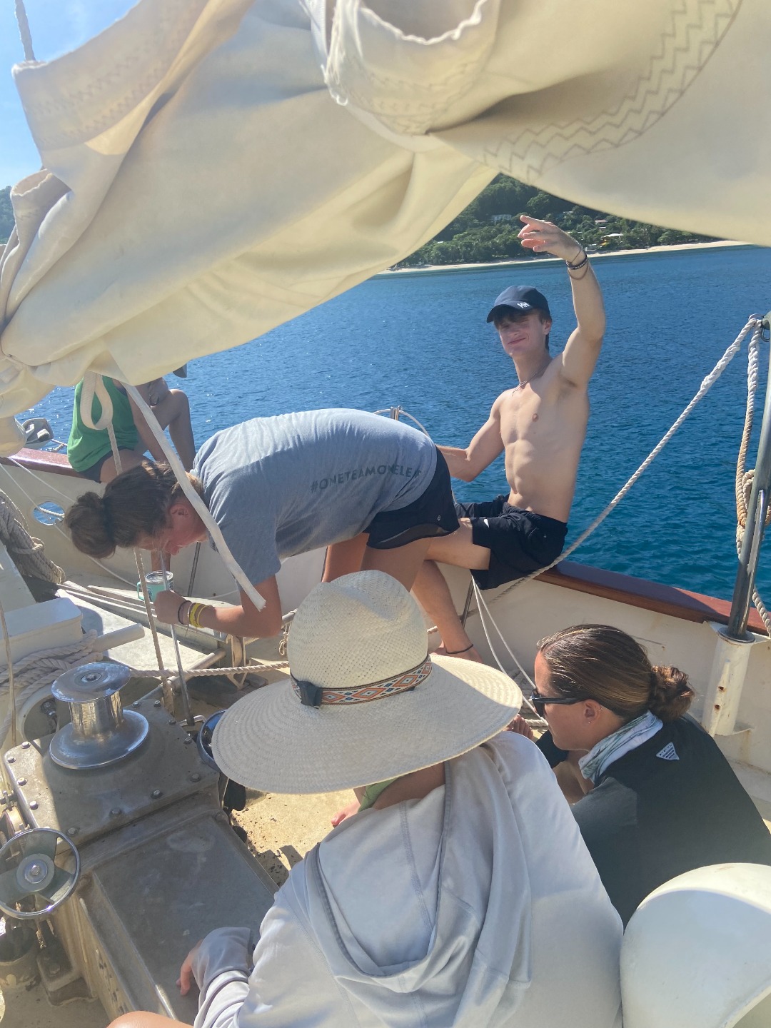 Things started out smoothly, but with our luck, we ran into problems rather quickly. Our engine failed us not once but twice, leaving it up to the sails to take us on our journey most of the way … if only you could see the blisters I have on my hands right now. On the bright side, the technical difficulties gave us much more experience up on deck, and I think everyone would agree. The day was spent finishing up school work, practicing on the sails, and getting to see the beautiful Caribbean coast.
