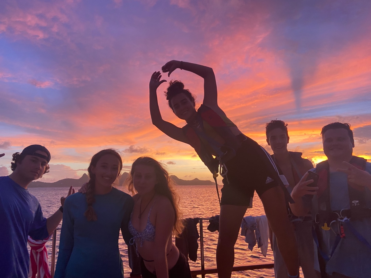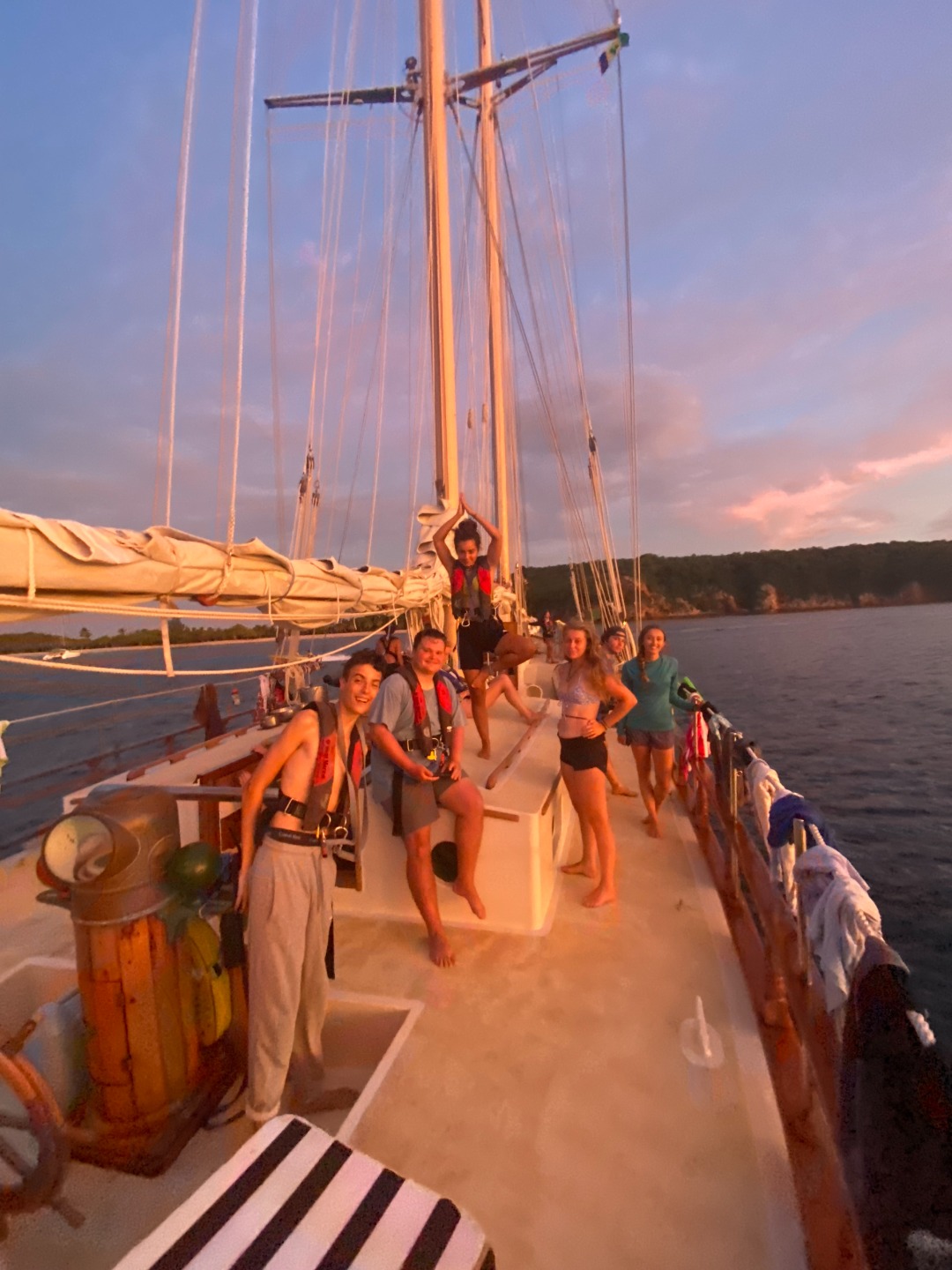 Sadly, Tobago Keys will have to wait for tomorrow because we wouldn’t have been able to get there before sundown, so we pulled into another small bay in Mayreau. We were greeted with a breath-taking sunset (featuring Vienna by Billy Joel playing in the background), and I think that was the highlight of everyone’s day. We also saw two Spotted Eagle Rays swimming alongside the boat after dinner! Tomorrow we will have a short sail to Tobago Keys in the morning, and finally, get to step onto some new land. I think one thing we can all learn from this experience is that plans don’t always go the way we want them to, and it’s up to us to either fight that or accept it and learn how to be flexible and okay with the uncomfortable unknown. Well, I’m going to end this here because I have boat watch at 4 am and need my beauty sleep.