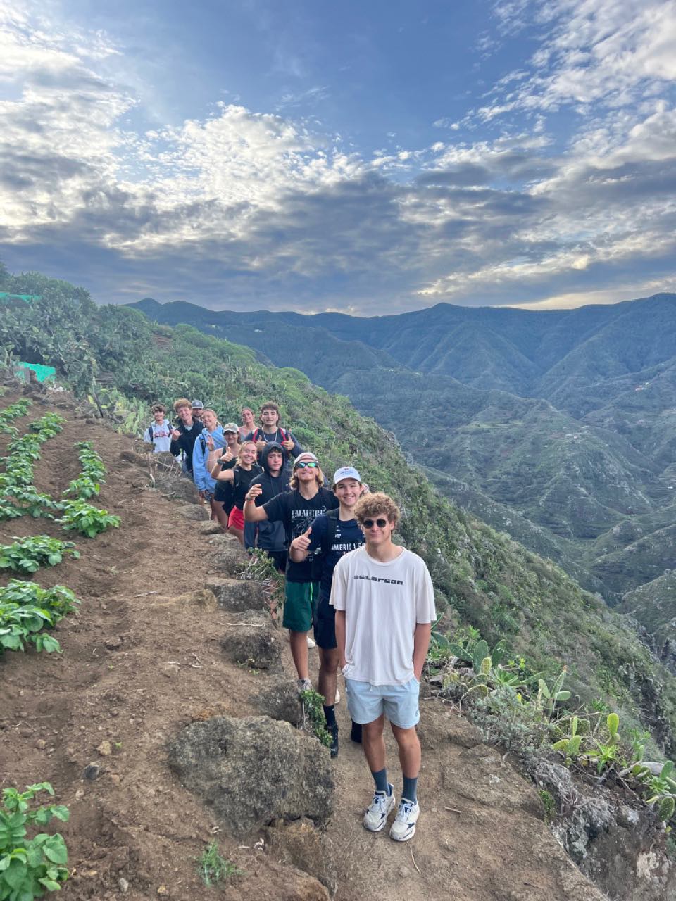 Today, Vela’s crew split into two groups to go hiking and scuba diving. My group (the better one) was hiking today, so all you blog friends at home will just have to wait for Smash to be skipper tomorrow when we switch activities to hear about our dive. The hiking group, consisting of Emma, Claire, James, Dan, Eliza, Chloe, Luke, Theo, Lillian, Lukas, Mac, Eduardo, and I (Brendan), woke up bright and early at 6:30 to the smell of Eduardo’s cooking. We packed our bags, scarfed down some delicious egg bites, and hopped into our taxis to take us up to the trailhead. Our original plan was to start at the bottom of the hike and get picked up afterward by the taxis at the top, but after we told that plan to the taxi driver, he basically called us crazy for doing the hike going up since apparently everyone always just goes down this route on account of how steep it was. (We would later learn that this was, in fact, a complete lie as we passed several hikers heading up on our descent.) So, with our revised plan, we set out on the road toward the peak of the mountain.