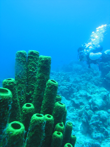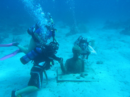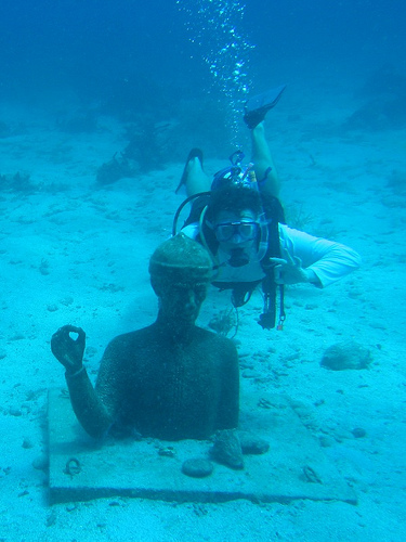 After our night dive at Pain du Sucre last night, we all headed for bed, ready for whatever today would bring us. Soon after breakfast, we hoisted sails and left the rock behind, bound for Deshaies and Pigeon Island off the west coast of Guadeloupe. The Marine Park here is a popular dive site and, in fact, was one of Jacques Cousteau’s favorite dives. Just a few minutes into our dive here, we realized why – lots of large fish, invertebrates, and coral that was far healthier than in many of the other places we’ve dived. At the end of the dive, a statue of Jacques Cousteau sat in 40 feet of water, and as we swam by, the shipmates gave him a high five. Back on board, we got the boat ready for our passage tonight to Antigua.