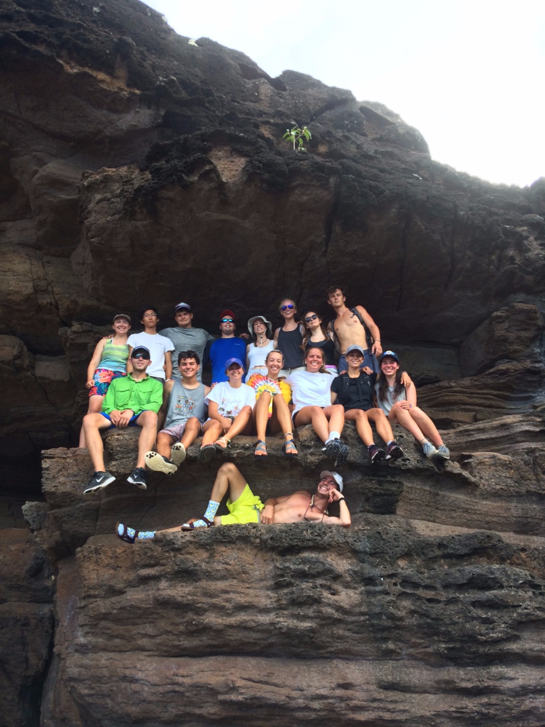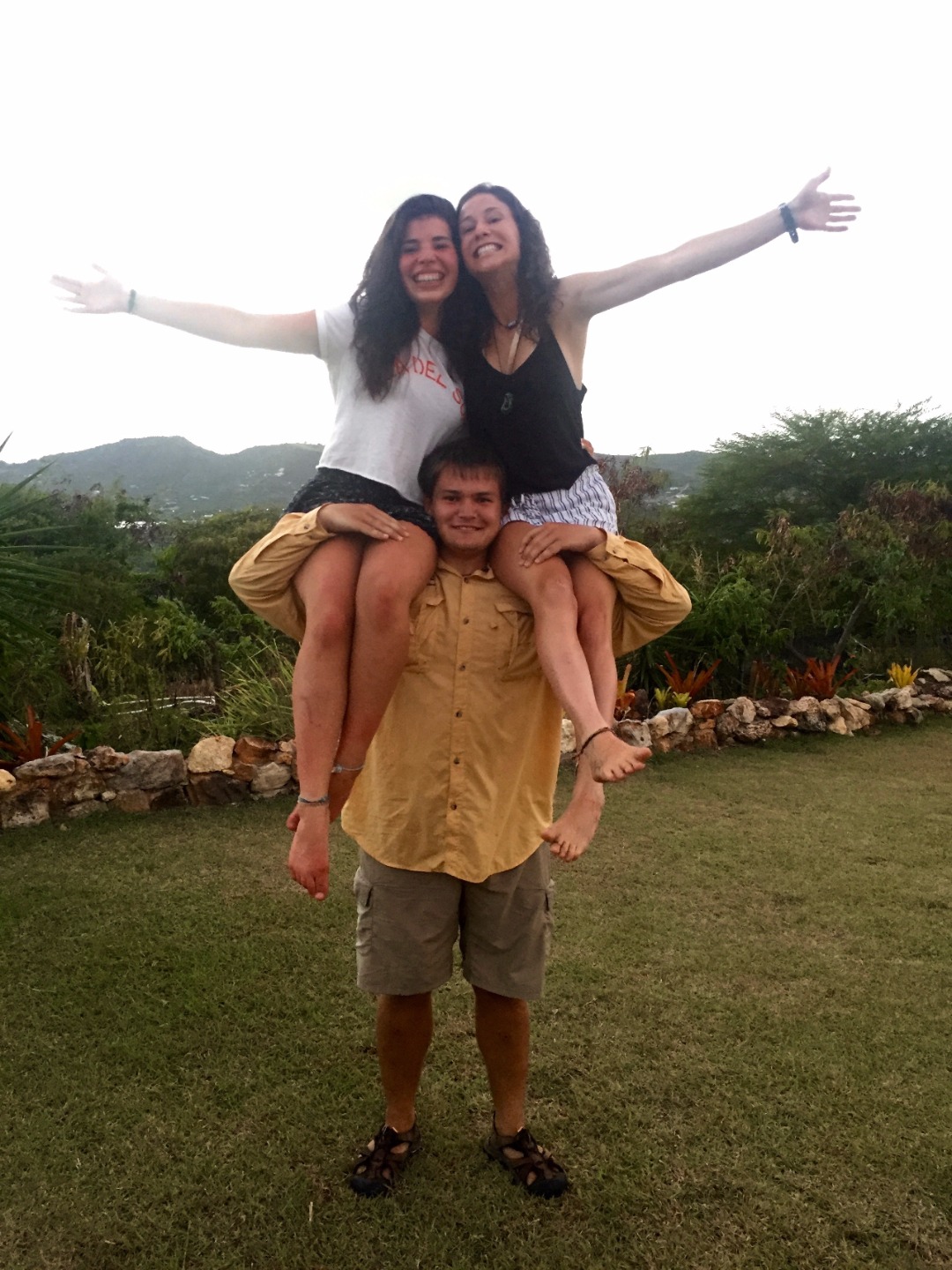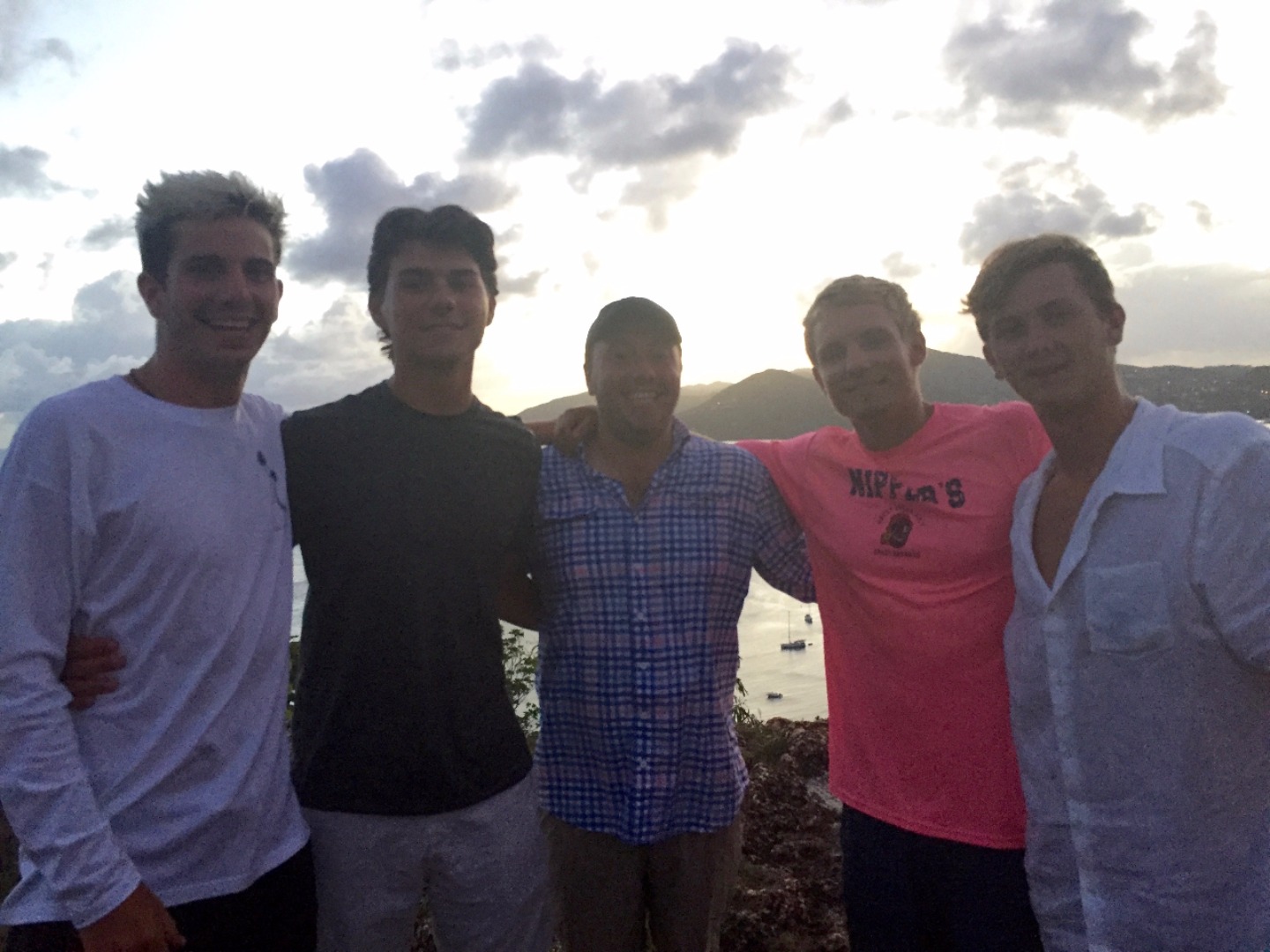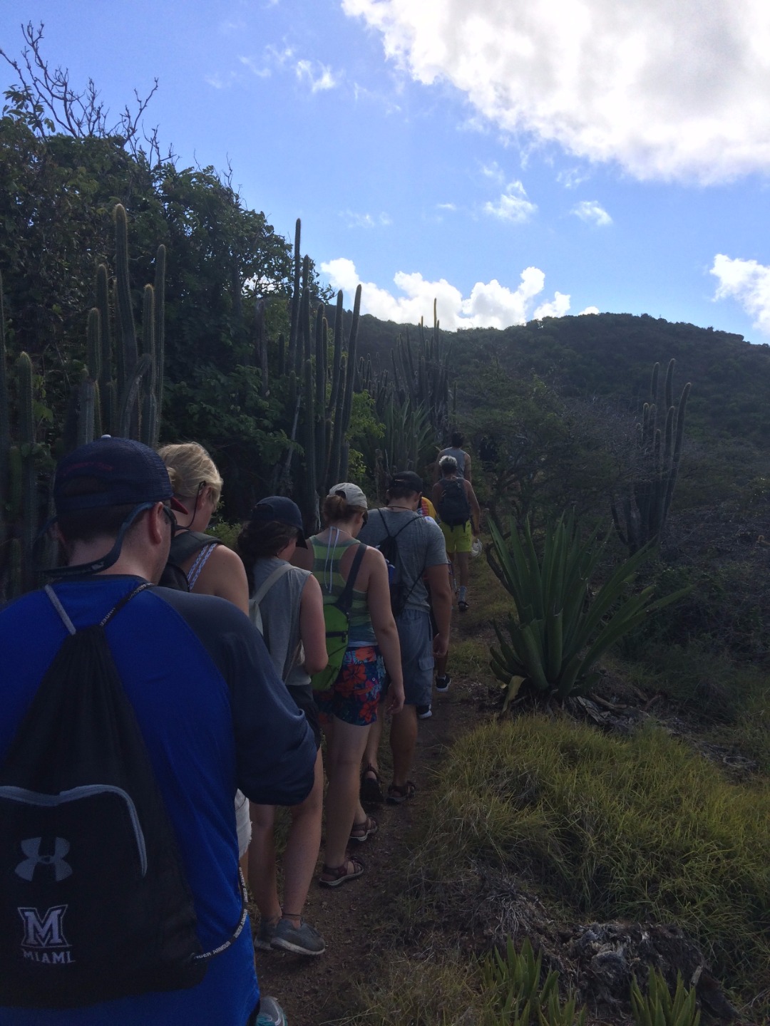 Everyone woke up this morning a little relieved to be able to use the dock bathrooms here in Antigua. After chowing down on Tings delicious French toast, we all got ready for our second day hike of the trip. On the hike, we saw the Pillars of Hercules as well as some tide pools, where we had a mini oceanography lecture on tide pool ecology and the tiny fish that live in them. Two lectures and some fried rice later, we had some time to work on our group research projects and to explore Nelsons Dockyard. After showering in the rain, we all gathered around for the nightly squeeze, where I asked what everyones favorite childhood TV shows were. Notable responses included SpongeBob SquarePants, Dragon Tales, Clifford the Big Red Dog, and Rugrats. Finally, we did an afternoon hike alongside our new dog friend up to Shirley Heights, where I am sitting now, enjoying a cheeseburger, island music, and a beautiful view.