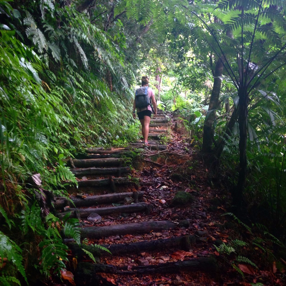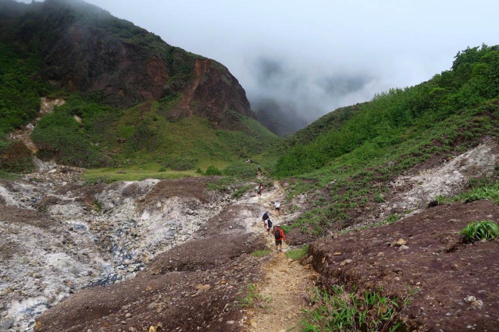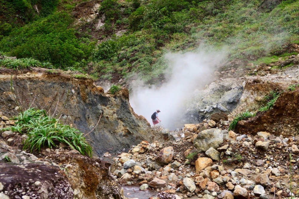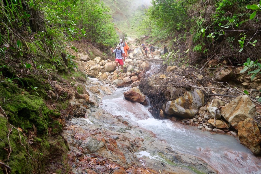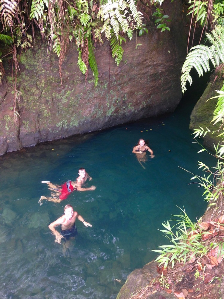Today, we woke up an hour before usual to prepare for our hike to the Boiling Lake. We ate breakfast and then started to pack up before taking dinghy rides over to Dive Dominica. We arrived onshore at 7:30 and took a short taxi ride over to the base of the mountain. Poncho was our tour guide of the day! He led us through the jungle to the top of a mountain, where it kind of leveled off so we could have lunch. Then we continued our hike to the boiling lake – one of only two such lakes that exist in the world! We hiked through rivers, waterfalls, streams, and huge rock formations. When we were almost to the boiling lake, we stopped at a few rivers that lead into the lake and made some hard-boiled eggs with the boiling water from the rivers. The,n we continued to hike to the lake. When we finally arrived, we were on top of a cliff that you could look over and see the giant lake bubbling with boiling water. We were surrounded by mountains; the view was incredible. After that, we headed back down the mountain; the hike was 11 miles overall, so it was long and hard, but the view was worth it! When we got to the bottom, we all went swimming at a natural pool while we waited for the rest to arrive. Then we got back in our taxis to head home! We then came back to Ocean Star to shower and got ready for dinner and a night out at Dive Dominica, where they served the best Mahi Mahi I’ve ever had! Overall, it was an amazing day!