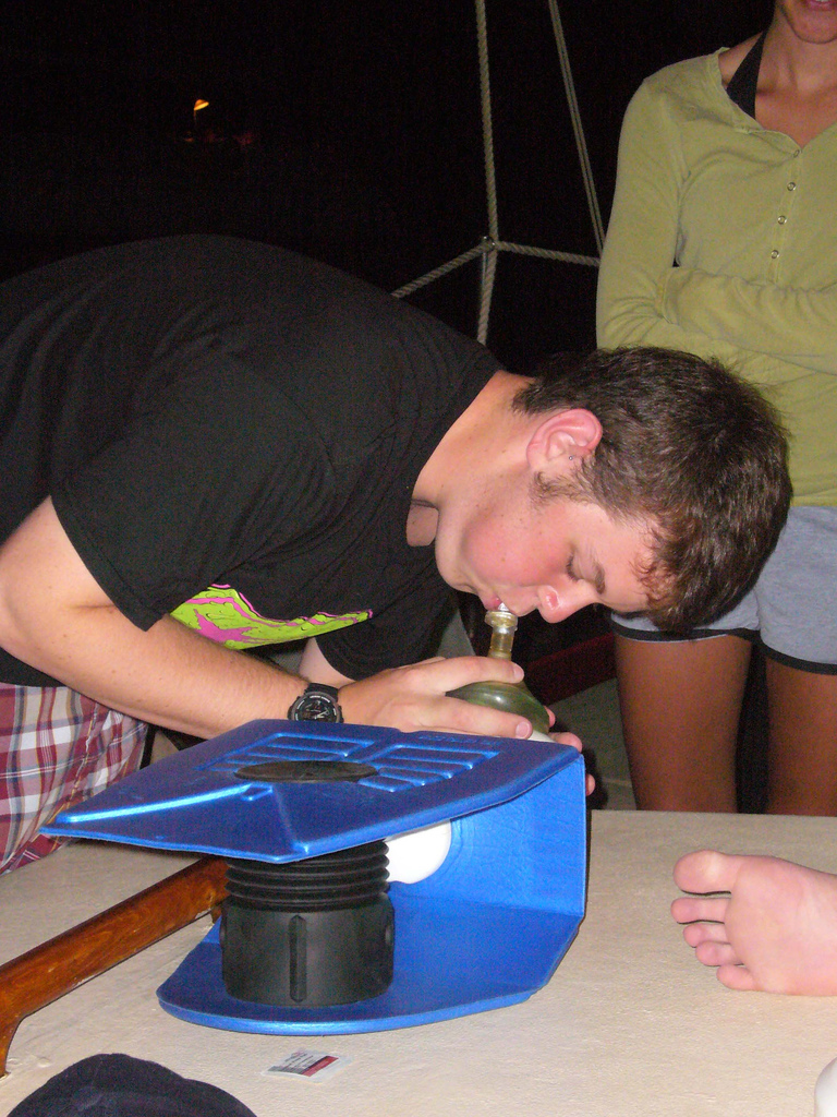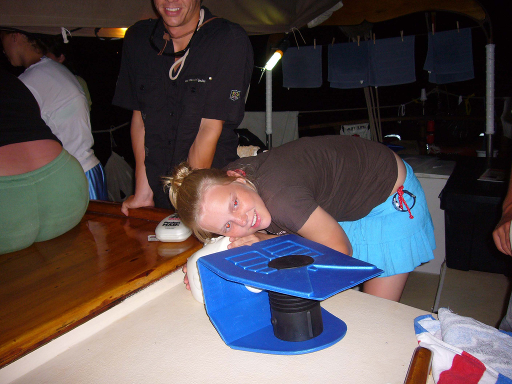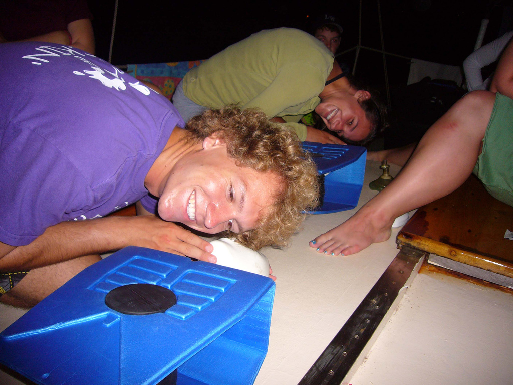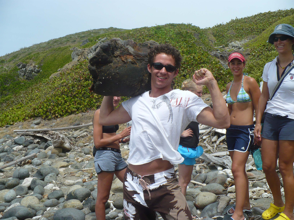 We started today off around 6:45 am with our first fire drill. After we all reported on deck with our life jackets, it was time for breakfast. We then had our first Oceanography class, which included a hike to the windward and leeward sides of the island. During the hike, we found a 50 lb piece of ambergris (a digestive secretion produced by sperm whales), which we’re hoping is worth a lot of money, as it is used in the fragrance industry. After the hike, the certified divers went diving at a nearby reef while the new divers finished class. After lunch, it was the new divers’ turn to finish our Confined Water dives for our certification. Next came showers and dinner. We are finishing the night with first aid and CPR certification class.