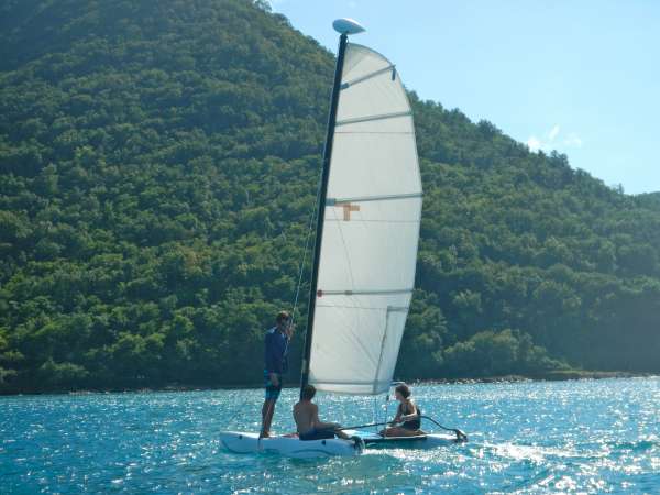 Laurie’s birthday started off with an enormous plate of bacon made into a weave just for her by JP and Tor. Many others created numerous birthday sketches and drawings to follow. After breakfast, we learned how to plot a dead reckoning in MTE class. Shore time then followed, which consisted of market trips and Americanized infrastructure that was a different vibe than that of the Caribbean, which we had all grown accustomed to. After shore lunch and exploring, it was time once again for some Hobie Cat racing! We rented a few boats on shore and took turns sailing around the bay. The wind was more favorable, so we were able to cruise along swiftly on beam reaches for some intense races. While others were out racing, those of us on the beach encountered some international American beach volleyball players who were taking a break from their tournament with a swim in the ocean. They were an interesting bunch to meet. After dinner, there was an OCB class in which Matty lectured about different types of marine plants and reviewed them for the Marine Biology test tomorrow. We are now all eagerly awaiting the chocolate cake that’s in the oven to finish baking so we can all sing Happy Birthday to Laurie!