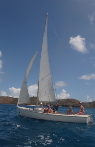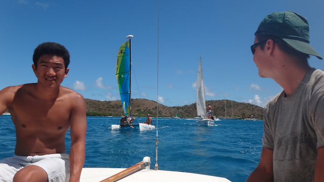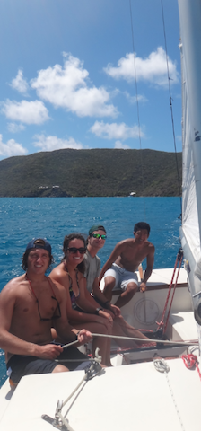 Today, we awoke to an amazing breakfast of cinnamon rolls and fruit from our cooks. After clean up, we attended a very insightful Marine Biology class by our professor, Matty. Following our class, we began Hobie Cat Carnage, which consisted of the crew taking turns sailing Hobie Cats and two Rhodes sailboats, and let’s just say the word carnage doesn’t do it justice. There were capsized hobies, men overboard, and boats stuck in Irons. Finally, after a couple of hours, everyone had it down, and some were skilled enough to run the racecourse. After proving ourselves masters of the ever-elusive ability to sail upwind, we had a free afternoon. The crew split up, some going to Saba Rock and some going to Bitter End Yacht Club. We all reconvened back at Argo for a Virgin Island presentation by Glenn and Graham, followed by another delicious meal from our chefs, which brought a little piece of Italy to Argo. After our dinner clean up, we had a night out at Saba Rock, and all looked forward to another day here in the beautiful British Virgin Islands.