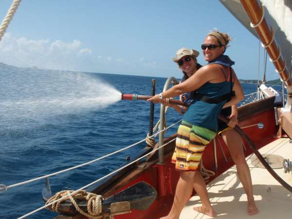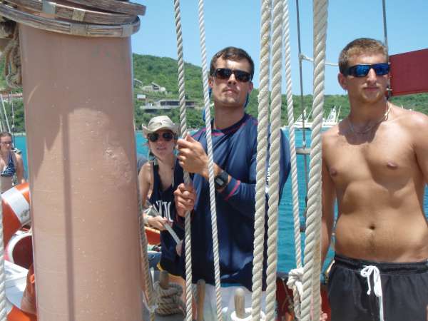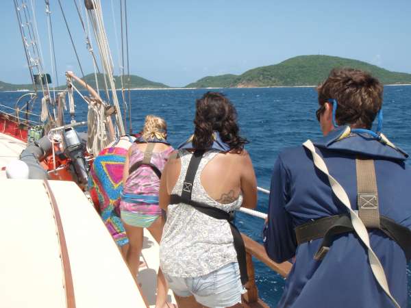 Fifth Day of our journey. We awoke to the beautiful Caribbean blues, skies, and water. After breakfast, we were given our two papers for the trip: the group research project and our individual literature review paper. After this, we began to prep the boat for departure to Mountain Point. After an early lunch and a thorough rundown of the ship’s rigging, we were ready to set sail! Placed into our respective watch teams, we all eagerly lifted our sails into the beautiful Caribbean sky. While underway with sails proudly raised, we did some maneuvering, learning how to tack and jibe the boat. We also had our first emergency drill for fires on deck. Upon nearing our destination, we gracefully lowered our sails and put Ocean Stars to rest. After our hard work, we got to shower at our destination and enjoyed a swim in some new waters to top off the day.