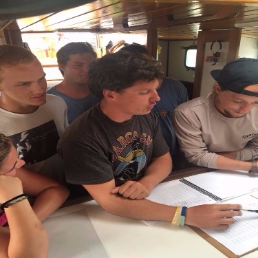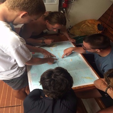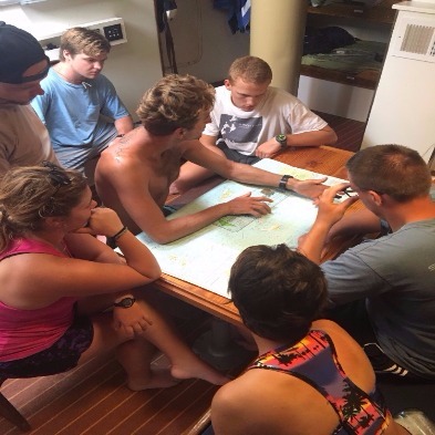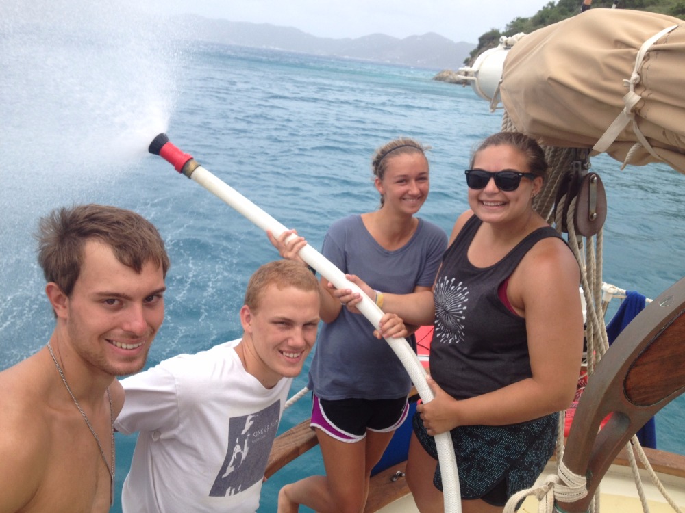 The Ocean Star crew woke this morning surrounded by something new… other boats! With O Star and her neighbors comfortably hunkered down in Great Harbor, the crew started off what was to be a productive day at anchor with the easy-going songs of Jack Johnson and delicious pancakes. After breakfast, our shipmates began the day’s series of classes with marine biology, learning about sea turtles and ecology, while some of the staff ran around making preparations for our passage to Nevis tomorrow. After class, the crew broke into their newly assigned watch teams to learn their different responsibilities in emergency situations. Some learned where to grab medical supplies and ditch kits. Some learned more sail handling techniques. One group ran the fire hose for what will hopefully be the first and only time (unless there’s a drill). After lunch, a build your own salad bar that proved challenging to eat with our gusty conditions, Smudge gave a lecture on leadership myths, managers vs. leaders, and Maslow’s hierarchy of needs. Following the class, we stowed our dive gear, and our shipmates learned about taking care of Ocean Star underway, being on active watch, and the procedure for conducting hourly underway boat checks. All that remains for the day are what will be a delicious lasagna dinner and a class on collision regulations at sea. While we are a little sad to leave the beautiful waters and comfort of the BVI, we are also excited to get underway for Nevis in the morning, find some sea room, and sail for all the adventures we will be sure to find in the rest of the Lesser Antilles.