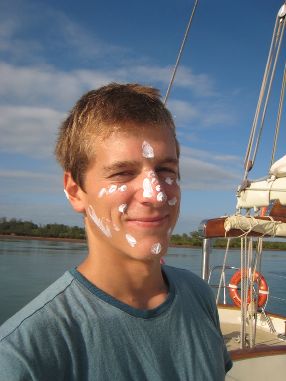 The staff tells us that this is “croc country.” Yet, we have seen only one croc. The crew is more worried about sunburns and stopping the buckets of sweat from streaming down our faces. Basically, it is hot, REALLY HOT. To give you a sense of the extreme heat, today Kate cooked an egg on deck. The crew was skipping from shade to shade to cool their hot feet. Yet, the crew is not fazed by the heat. We are instead excited for our tour tomorrow of Nguiu. Nguiu is an Aborigine town in the Tiwi Islands. We are all excited to see how tomorrow unfolds.