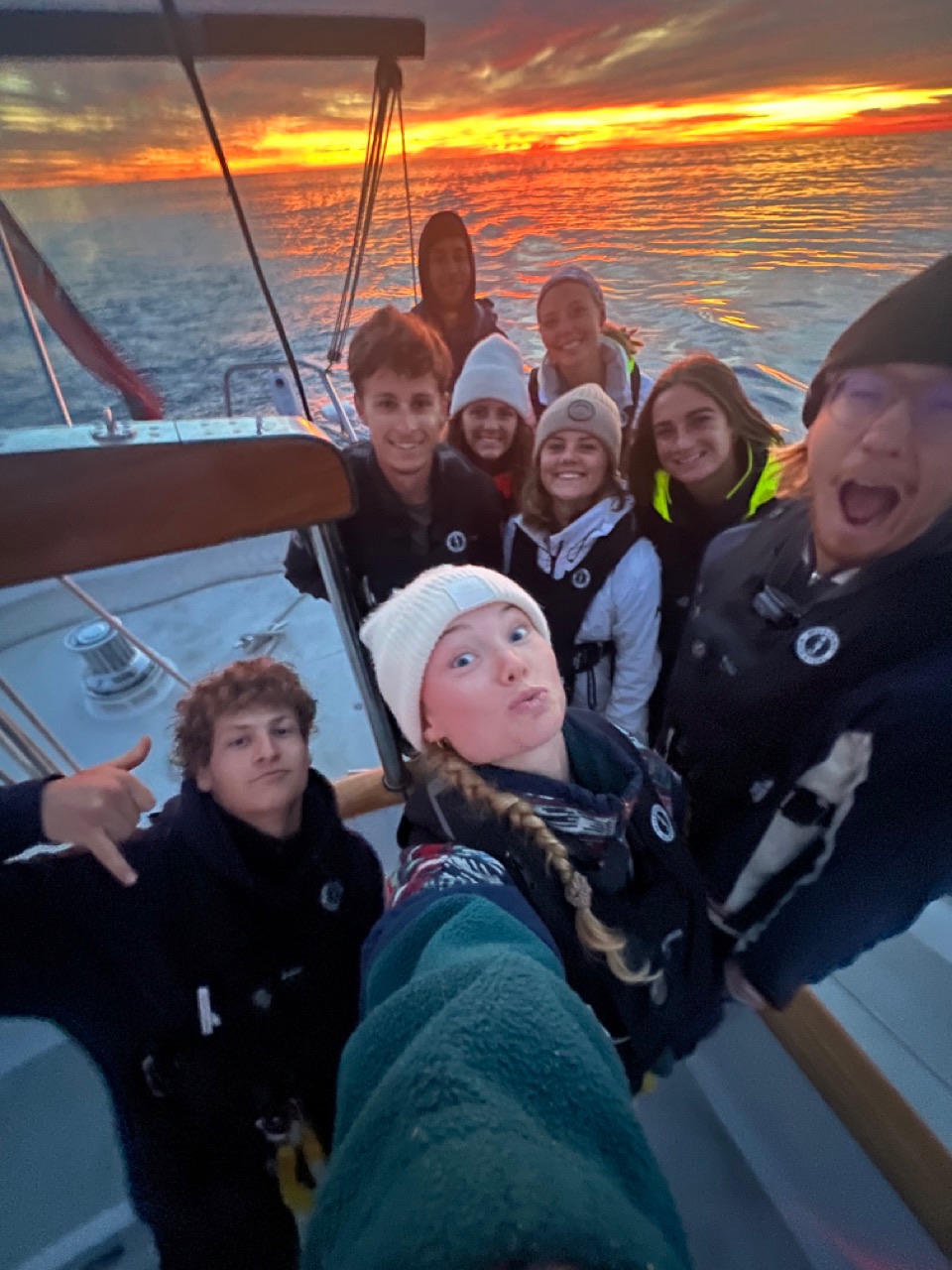 For me and my watch team (Mac, Chloe, Audrey, Watson, Theo, Ruby, James, Liam, and Eliza), our day started at 3:30 am for our 400-800 watch. We came up on deck to a completely flat ocean some might call it The Great Lake Atlantic. We chatted the morning away, telling each other stories, listening to a bit of music, and talking about our day ahead. Today is THEO’S BIRTHDAY!!! We made sure we sang to him at least 5 times today. We were treated to the most beautiful sunrise to finish up our watch this morning.