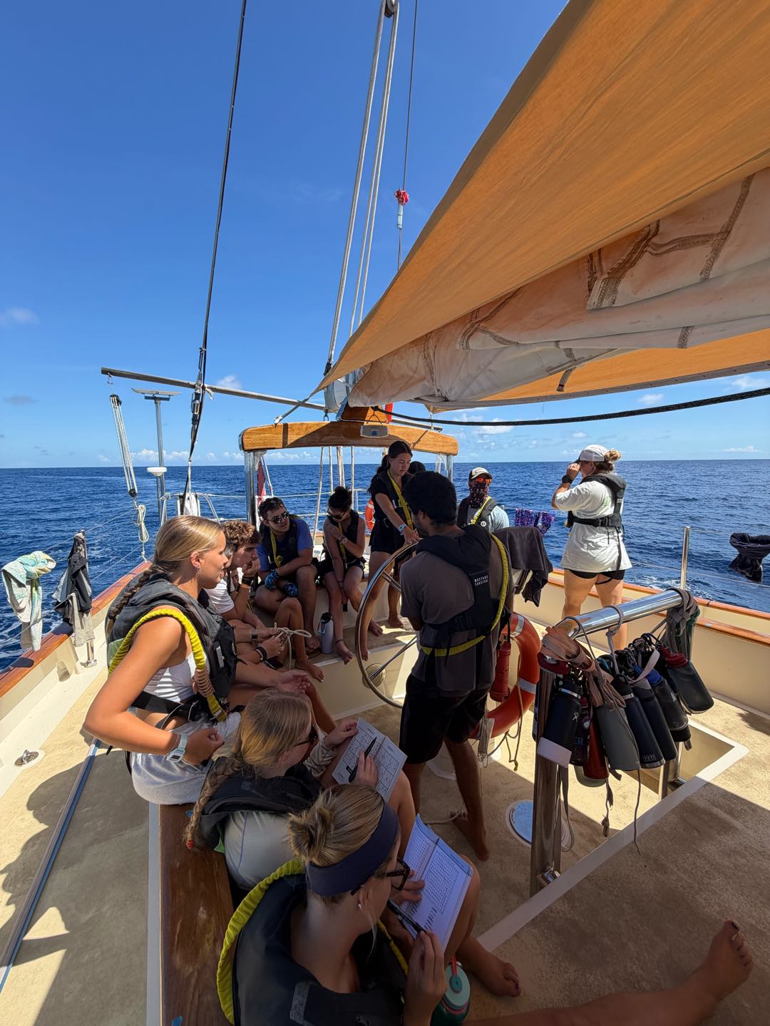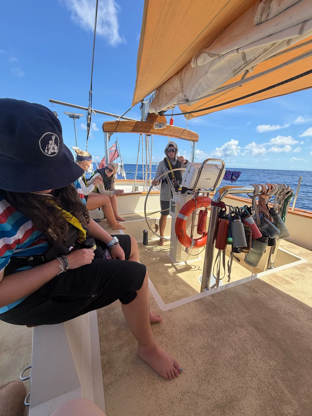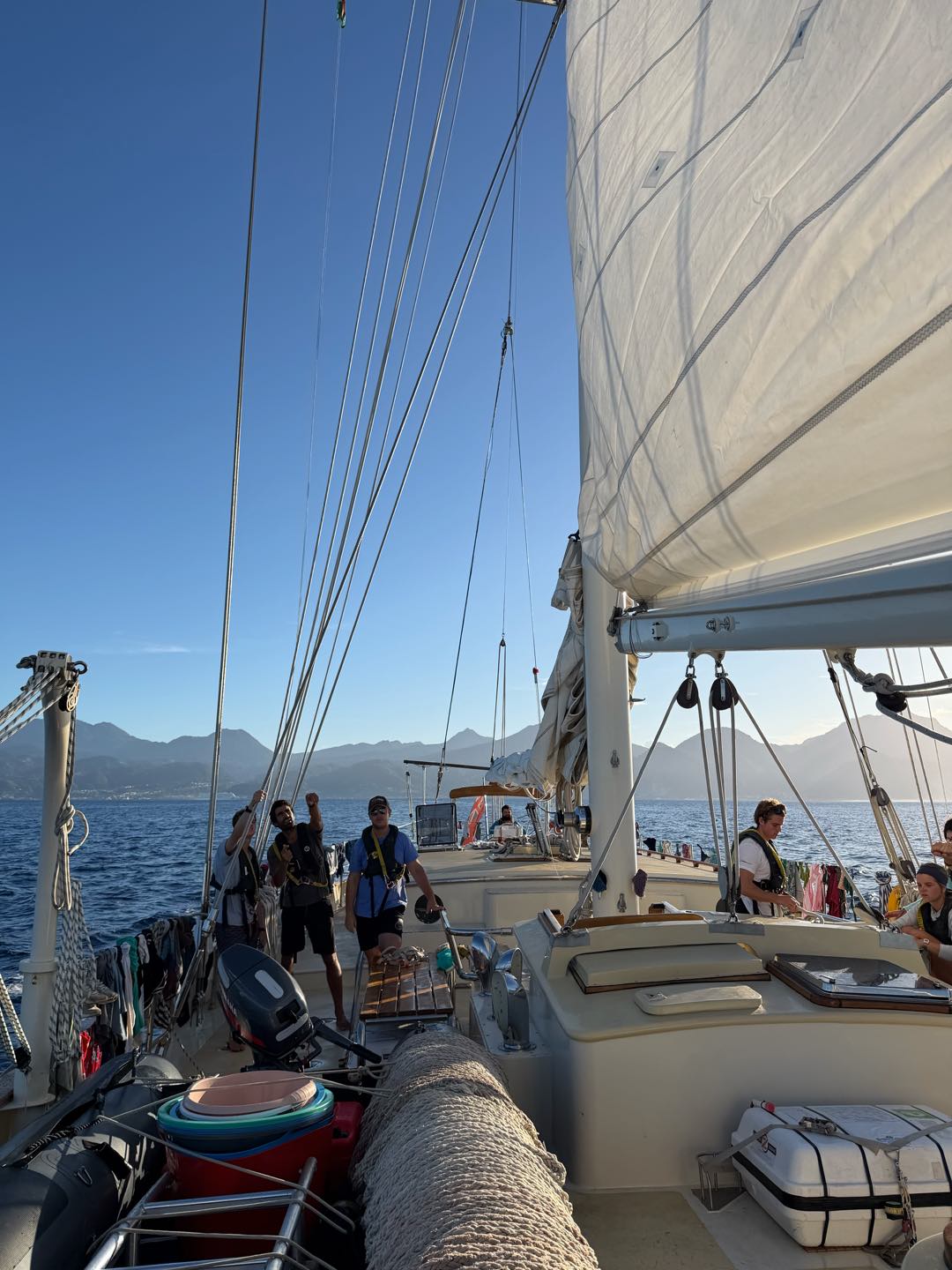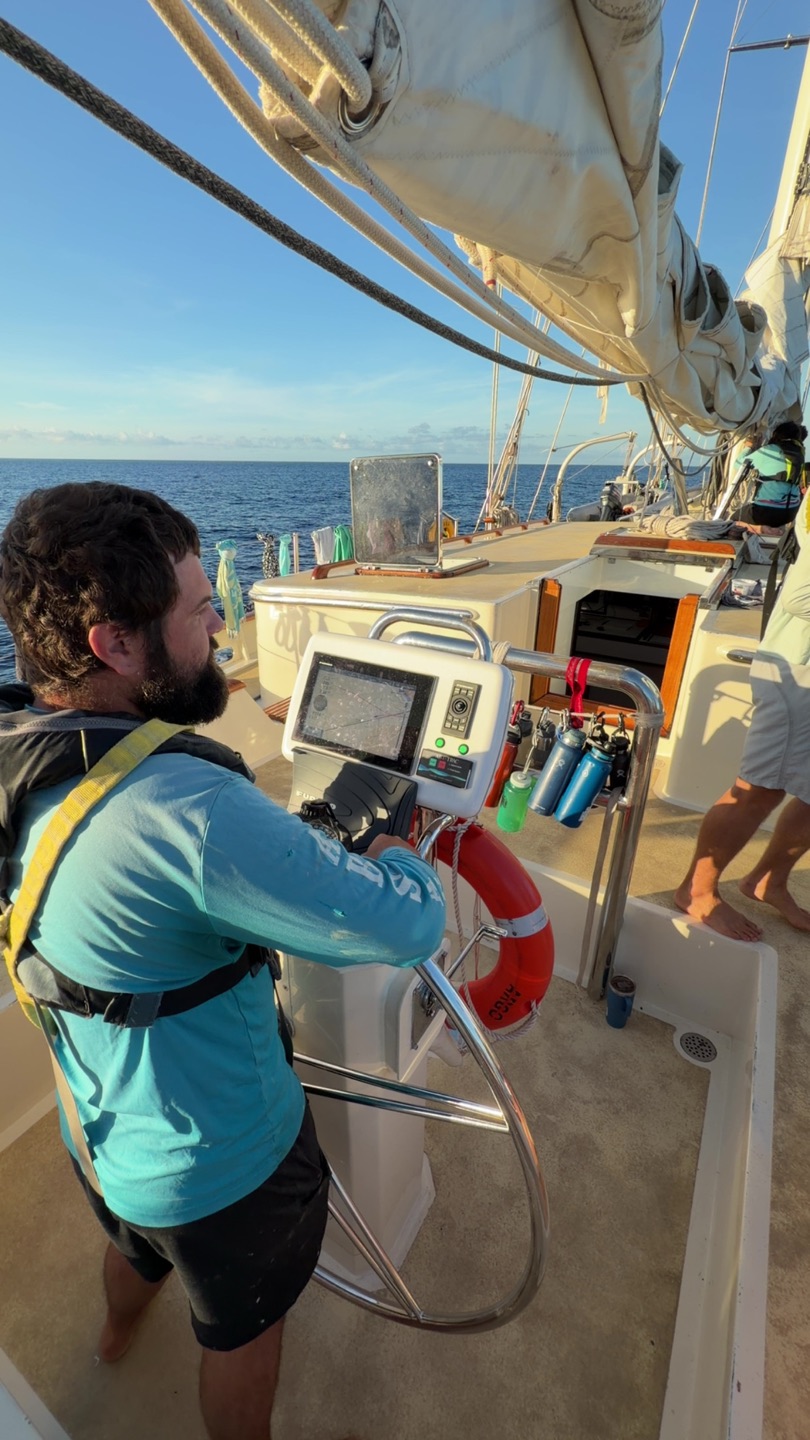 What’s up, guys? Jonas Jarecki here, back with another YouTube Challenge Video! Nah, just playing, no YouTube on Argo because we’re underway to Bonaire. We left Dominica this morning at some time. I don’t know when because the Watch Team One got us underway. That meant that everyone else got to sleep in, so that’s exactly what I did. I slept till drum roll please 7 am. How is it that when I finally have the opportunity to sleep in, I can’t sleep? That is so messed up. I digress (I will be saying “I digress” a lot in this, despite not being entirely sure how it is meant to be used). So, I digress, when I came up on deck, I got to watch Shane and Watch Team One put up the Main Stay Sail, and the Forward Stay Sail. It was kinda goated (another term I will be using a lot) because I got a sort of sneak preview for what we learned in Shane’s class later. As everyone started to wake up, Shane and Aiden informed us that we were allowed to fish, so Cason and I dropped our lines off the Stern. We sat out there for a good chunk of the day, for two different Watch Team rotations. It was goated. Honestly, I probably shouldn’t be writing this blog cause most of what I was focused on today was my line catching a whole lot of nothing. Yet, I digress, for lunch, Will made a divine Teriyaki Chicken with Rice meal, I even heard some describing it as “goated.” After lunch we had Shanes class, we have a quizz coming up in which we will need to know every line and standing rigging on the boat, and what it does. So we did a walk-through to help try to get it down, and I took more notes in that one hour class than I have in my five semesters of college. But, I digress, after Shane’s class, we had Meg’s class down in the Galley. It was really hot, so Meg didn’t keep us super long. I would try to tell you what we learned, but I am still a little confused, so I will have to consult my notes. After that, I went back to the cockpit for my watch. It was only a two-hour watch for us, however, because Rachel and Charlie had done the first two while we were in class. I dropped my line again. About an hour in, we saw a massive Tuna jumping out of the water on the Starboard side, so I got ready for the catch of my lifetime (I didnt even get a bite). We had watch up until dinner, when Will made another absolute banger of a meal, Coconut Curry with Rice. I think that would be my one piece of advice to anyone debating doing a Seamester voyage: “If you don’t like rice, it’s not for you.” Otherwise, Seamester, just like today, is Goated.