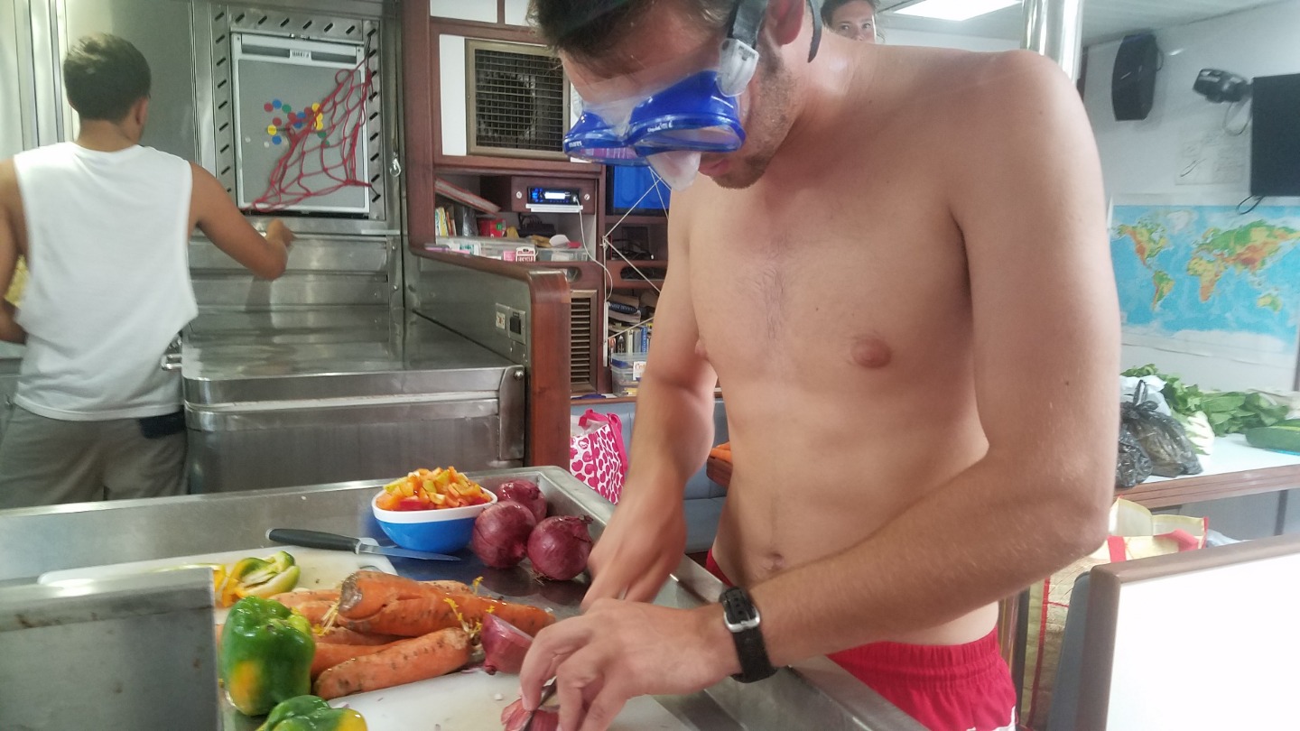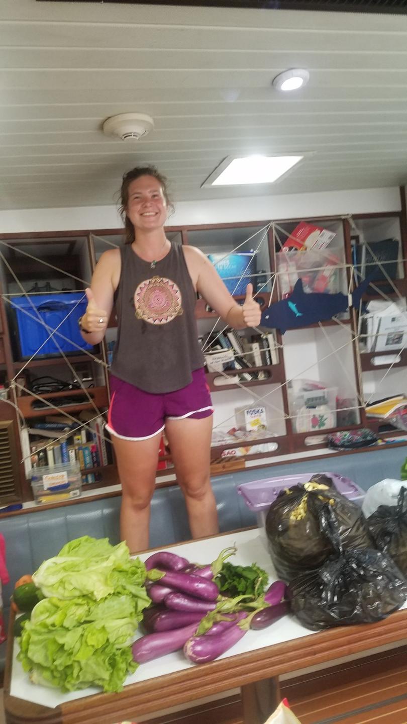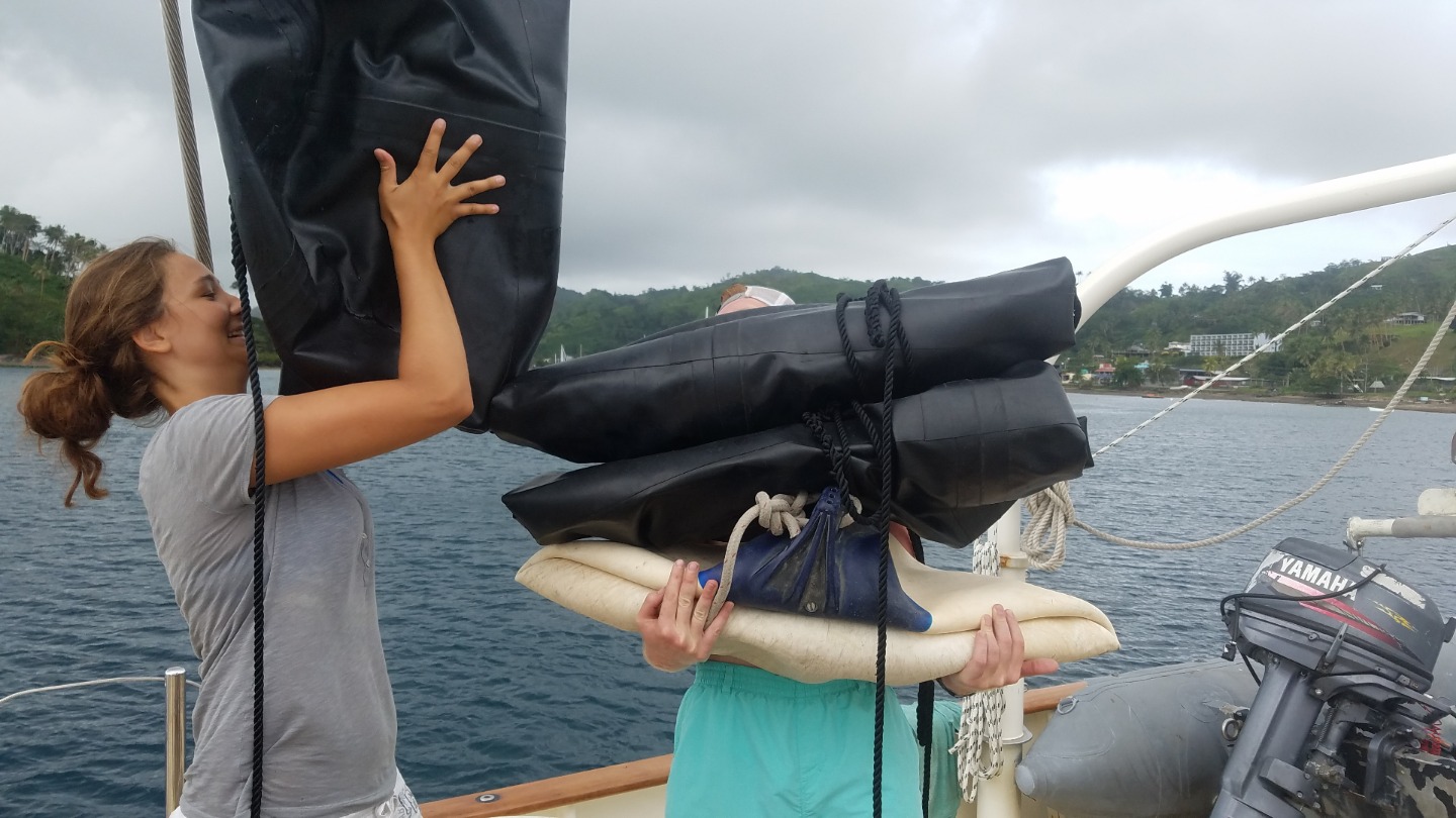 At first glance, today didn’t appear to be one for the history books, no epic, once-in-a-lifetime dives were made, no waterfalls leaped off of, no marine mammals sighted, but to us, it was a chance to get back into the Argo rhythm. After our student-led passage yesterday, I think everyone enjoyed sleeping in till our usual 7 am wake-up time. Our main goals for the day are getting on the dock to fuel (which is itself an adventure sometimes on these remote islands), provisioning for our next passage, and getting underway to Vanuatu. All of these activities require all hands and almost regimental order to run smoothly, but here on day 50, I’d say we’ve got that down pretty well. The toughest thing to get used to, in my opinion, is the rapidity with which the Argo crew needs to be able to switch between tasks. One minute you could be working on your Introductions for an Oceanography paper, and the next, clearing away your computer to make room for an entire table’s worth of vegetables in the saloon or interrupting your nap to help adjust fenders because the tide has dropped. This “hurry up and wait” stage is a sometimes difficult state of mind to be in, but especially after yesterday’s student passage, all aspects of today could not have run smoothly.