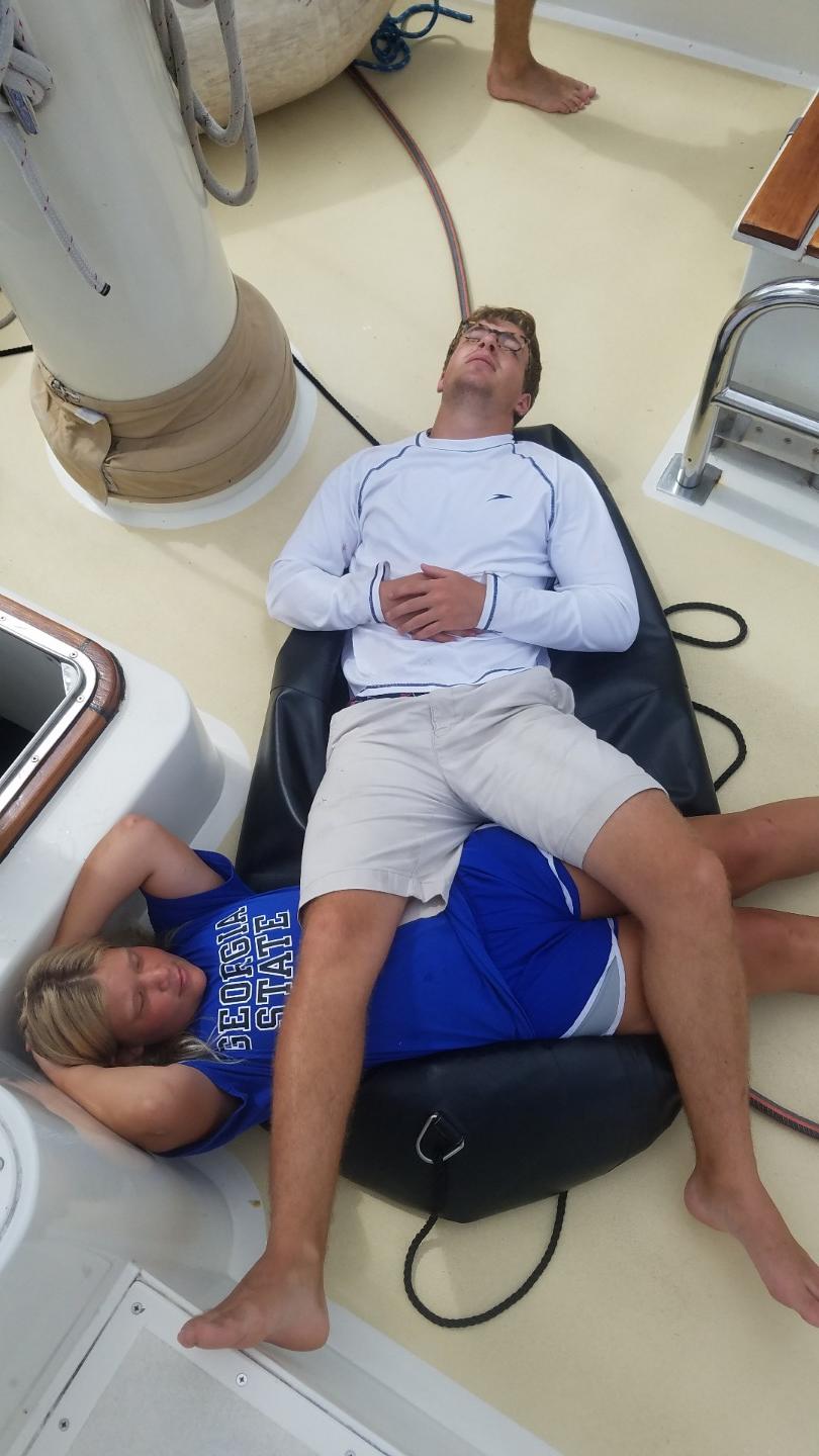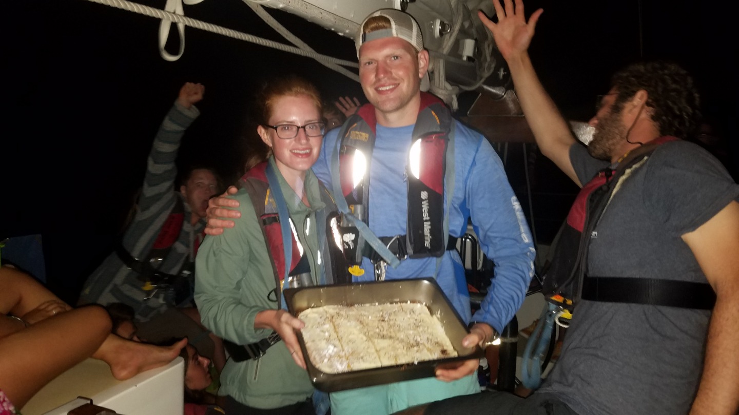 Garret, Zoe, and Haley were kind enough to help Carolyn provision for this upcoming five-day passage, which, as Carolyn has mentioned before, is in and of itself a cultural experience. Here in Savusavu, the fresh fruit and vegetable market is an almost overwhelming experience of sights, smells, and sounds, but full of friendly people. While the rest of us prepped the boat, Jack, with his fellow chefs Sara and Griffin, made two excellent meals along with a cake (and heaps of cream cheese icing) for birthday girl Shelby. The extra pieces did not go to waste but instead were handed out, Jeopardy-style, to those people who answered Shelby-themed questions correctly. It is sad to leave Fiji, a place that has treated us so well and where we have had adventures of a lifetime, but further adventures await on new islands and in new waters. The earlier rain has cleared, the stars are currently out in full force, and I am on watch from 8-12. Here’s hoping our passage to Vanuatu is filled with good skies, a steady breeze, and lots and lots of humpback whales.