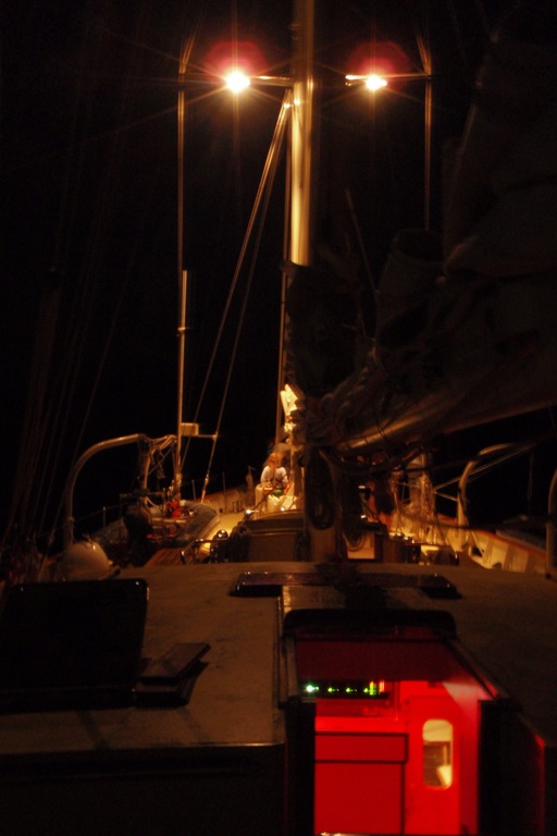 A 7:30 am wake-up came far too early for team Argo, most of whom had taken seasick medicine the night before to ward off any problems that might come up during what would have been a tempestuous night sail. Unfortunately, no one really got a chance to sleep off the medicine, leading to a very groggy breakfast and morning sailing class. In hopes of setting sail around 10 am, a few students took more seasick meds and grabbed a quick nap. But winds high enough to send our anchoring neighbors dragging around the bay kept us in port for another day. Students remained on board, watching movies, catching up on journals, and sleeping. Mostly sleeping. Bed-headed and bleary-eyed, students made their way on deck mid-afternoon to prepare Argo for what will hopefully be an early start tomorrow and enjoyed a delicious dinner from the culinary master’s Tom and Dickie. As beautiful as Calvi is, I think I speak for everyone on board when I say we are ready to bid this port adieu and head to Bonifacio.