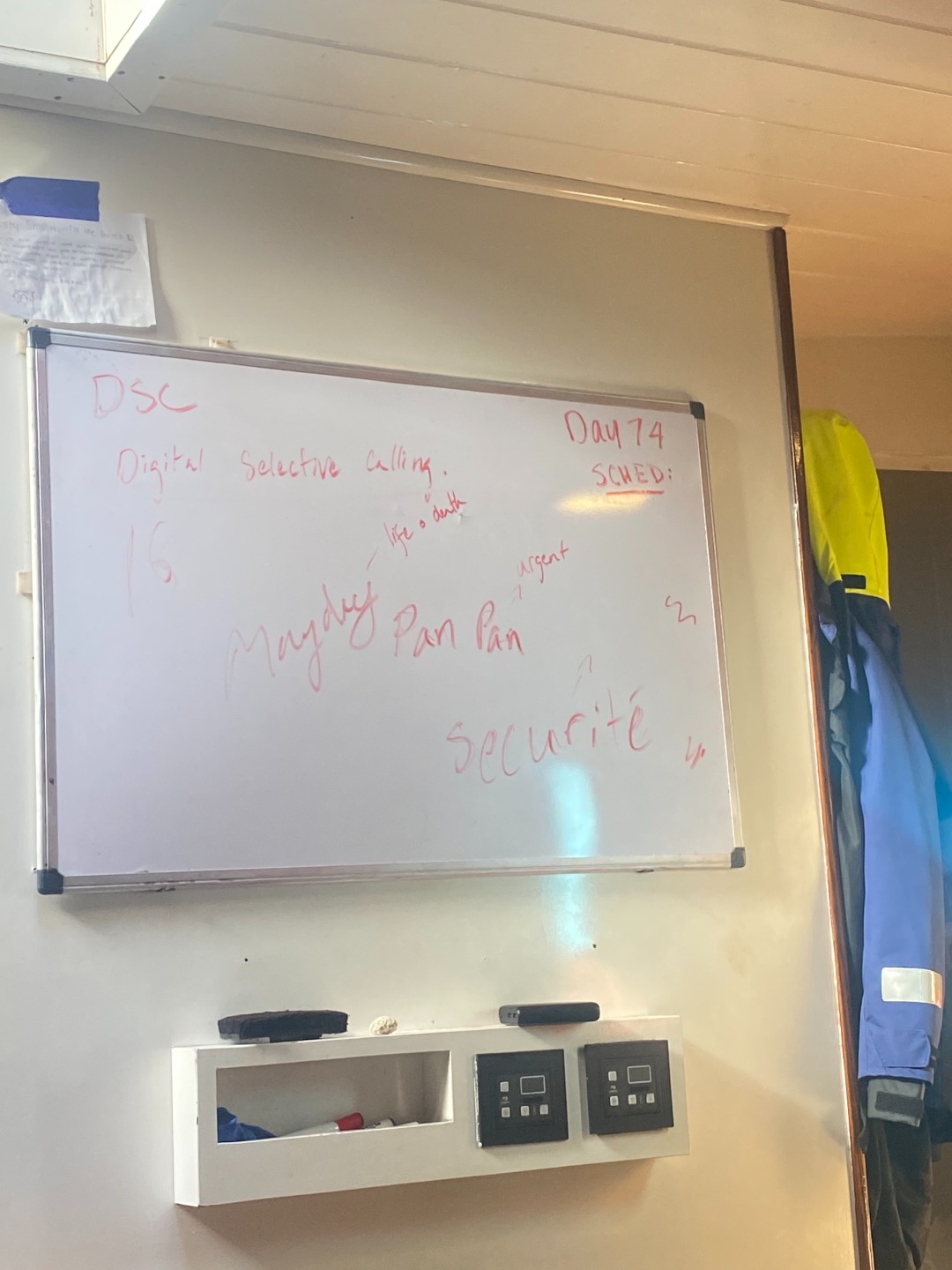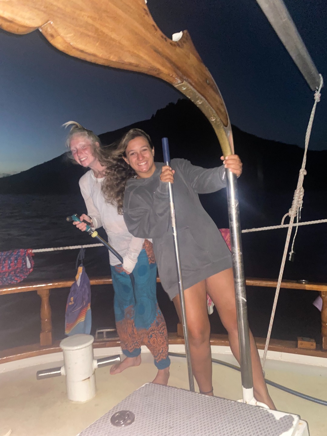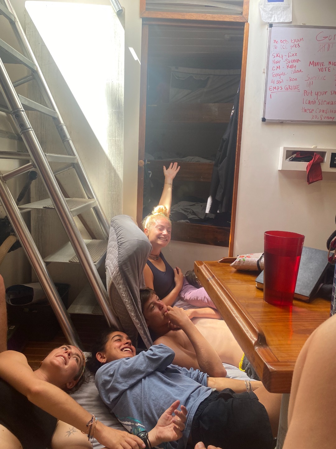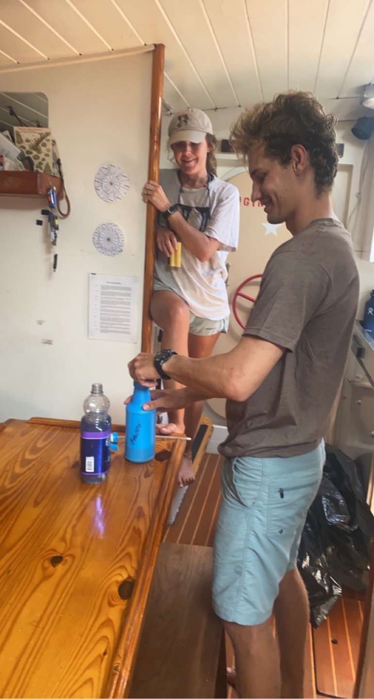 Then after lunch was time for a Seamanship lesson by Heddy about how to use the VHF and proper terms. However, we decided we wanted to watch Moana instead. So we all did, and Heddy and Sam joined us! After Moana ended, we did have to do the VHF stuff tho. Then it was ocean shower time!!!