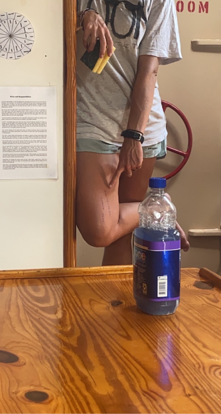Pic 2- sam showing us the answers to our exam written on her leg