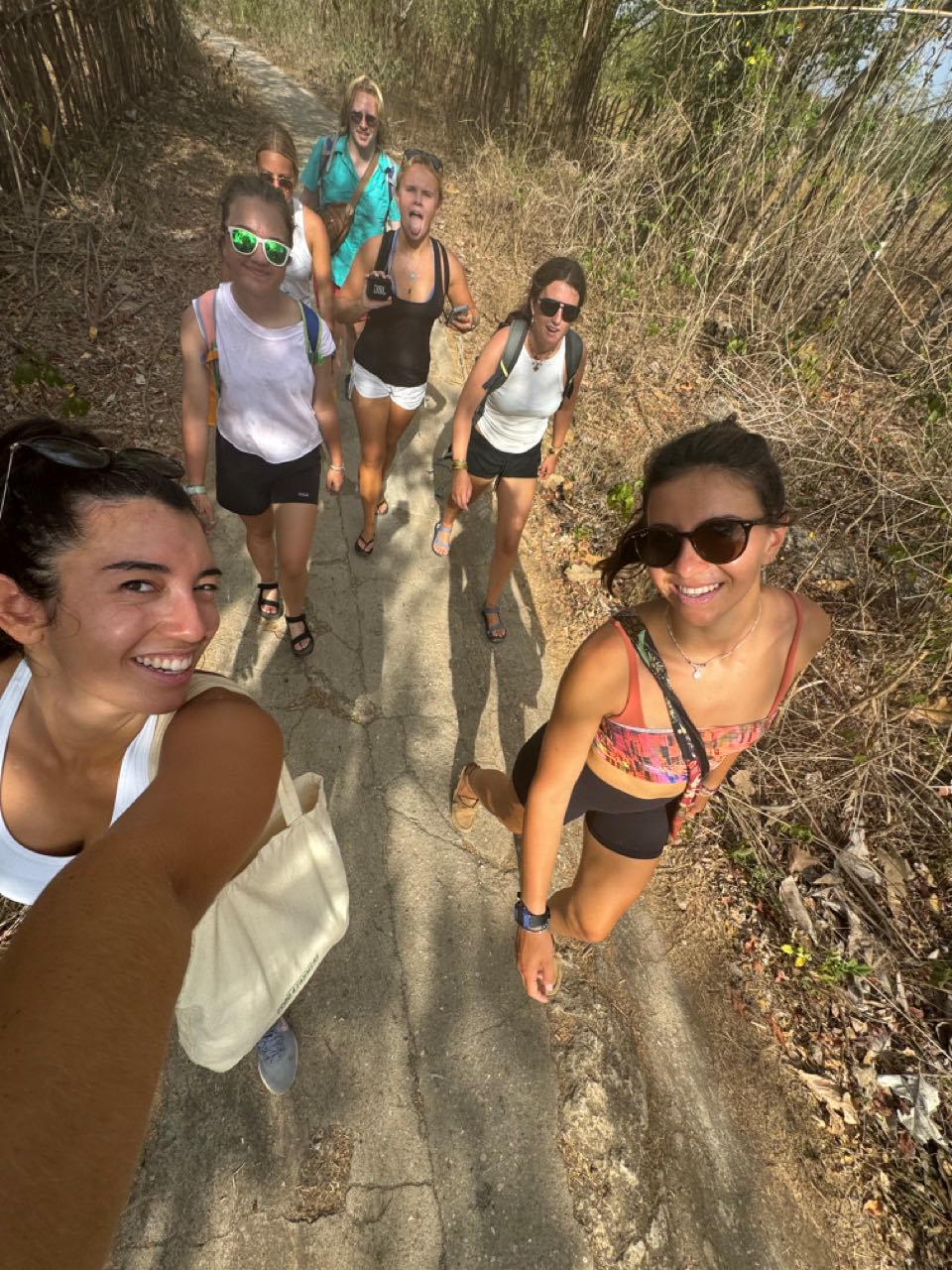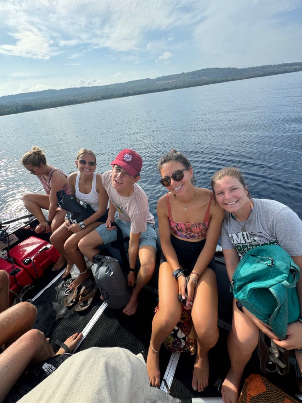 Hiiii, welcome to my first ever blog post! I remember reading posts from past trips before coming aboard Argo, and I can’t believe I am finally here writing one myself. It has finally sunk in that this is actually real and not some amazing dream. Last night, we got our phones back, and a lot of us got to call our families. With our phones finally back, we also have access to music again, which has been great. Last night, Ava, Bodhi, and I looked through my playlists to find the perfect song to wake everyone up to in the morning. I was excited to play “Upside Down” by Jack Johnson for everyone, but when the wake up time of 6:30 am came around, everyone was already awake, so I didn’t get to play my song 🙁 Instead, we just connected to the big speaker and had a little dance party in the galley before breakfast. After breakfast, we took the dinghy out to the island of Moyo Moyo. It’s a super remote and small island, with essentially nothing on it besides people’s houses. It was our first time on land since the program started, and it was super crazy because while standing on solid ground, I could still feel the rocking of the boat. My first few steps felt pretty wobbly, and we all were laughing, trying to walk straight. We walked through one of the streets, where all the locals waved and smiled at us as we passed by. Then, we began our 2-mile hike to the waterfall. The road was a narrow, rocky path that was quite steep, so I was pretty shocked to see mopeds zooming up and down. Once we got to the waterfall, we all jumped in for a swim and climbed the rocks, which allowed us to stand underneath/behind the waterfall. Kiley, Drazka, Allie, Ava, and I created a synchronized swim to perform for everyone else, although they didn’t seem as impressed as we hoped they’d be. After our 7/10 performance, according to Bodhi, we hiked back down to Argo, stopping for popsicles along the way.