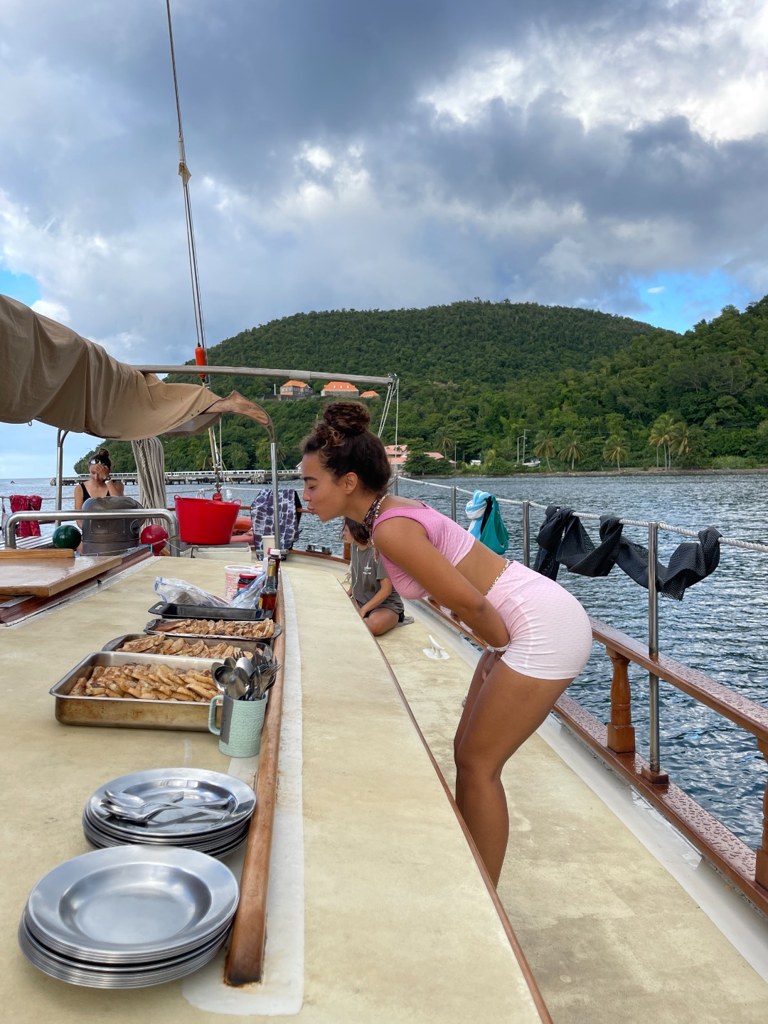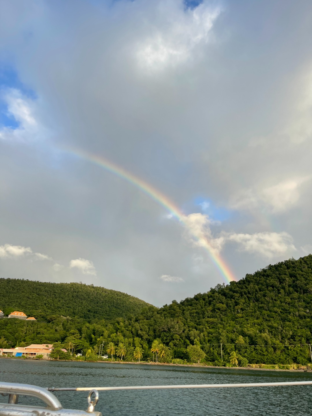 Okay, onto our first full day here in Dominica! We woke up to a beautiful rainbow off the stern of Ocean Star, which for those that know me to know how excited I am by rainbows. It hung out all through breakfast and really began our day on a great note. We enjoyed some delish french toast prepared by our chefs Stef, Logan, and Sophie, followed by a super swift cleanup and then shuttled over to the dock for our island check-in. We were greeted at the dock by quite literally the most needlefish I have ever seen in one spot in my life. We did our little check-in and then came back to Ostar for a leadership class. Today’s class was led by Logan, who talked to the shipmates all about group dynamics, quite a fitting topic for our life on board here. After class, we had another delicious Wojcik family recipe, this time from Steffy’s sister, lentil soup! Then, as we do after every passage, the rest of the day was BA (Boat Appreciation) time. We gave the deck a nice soapy wash, changed our sheets, organized the cabinets, scrubbed ALL of the surfaces, and Hedrek and Lucia even got to clean out the grey water tank! We are all very appreciative for Ocean Star bringing us safely from St. Lucia to Dominica, and now she is appreciative of us for giving her a nice deep clean. Back by popular demand, Stef cooked her mom’s turkey wraps for dinner, and yet again, everyone loved them. Asta even cried. They were so good. Cleanup is currently rolling on around me, and afterward, we will be doing black and white cards, a timeless GXG tradition. 2021 has been an absolute pleasure. See you all again in the new year!