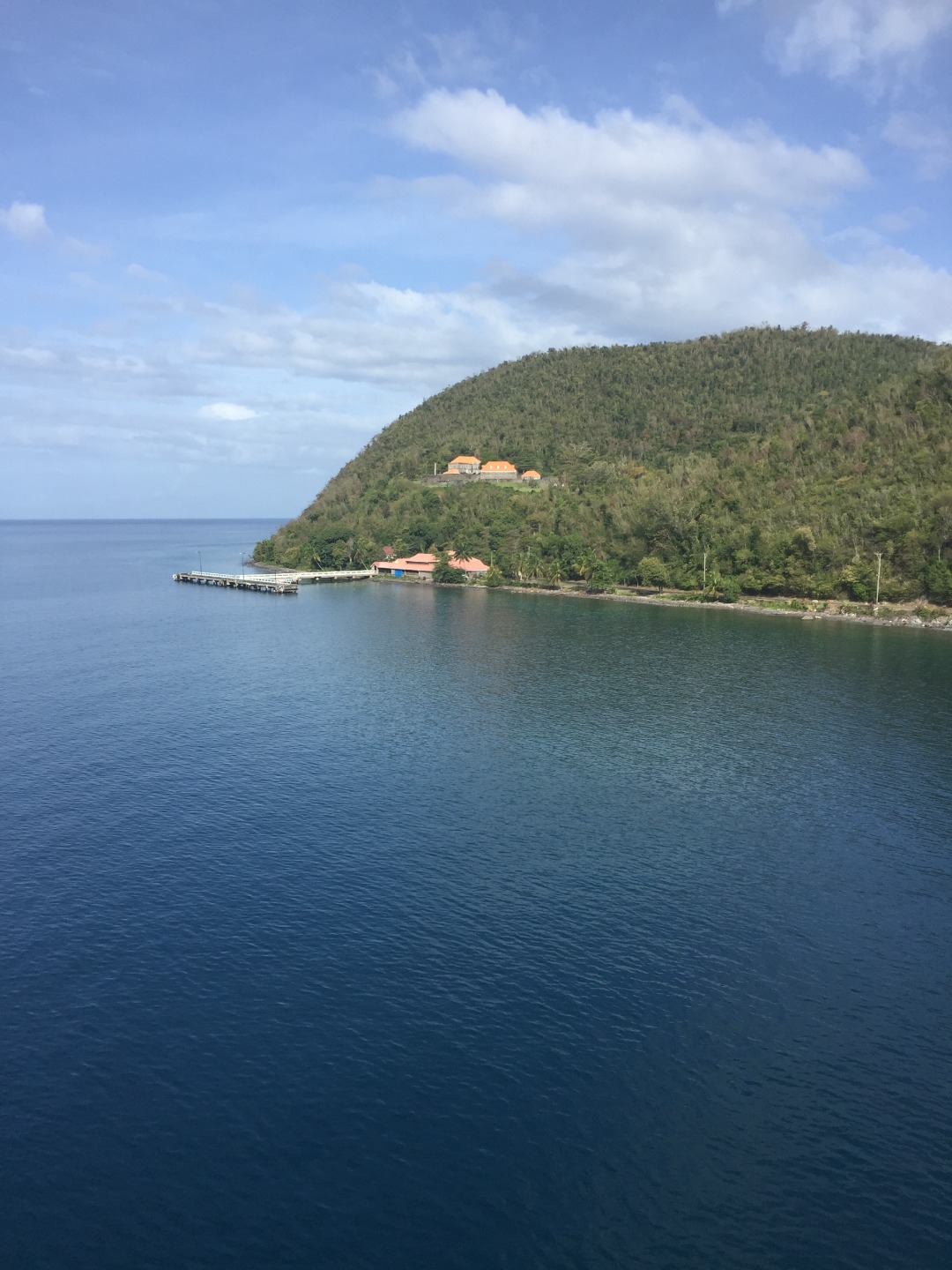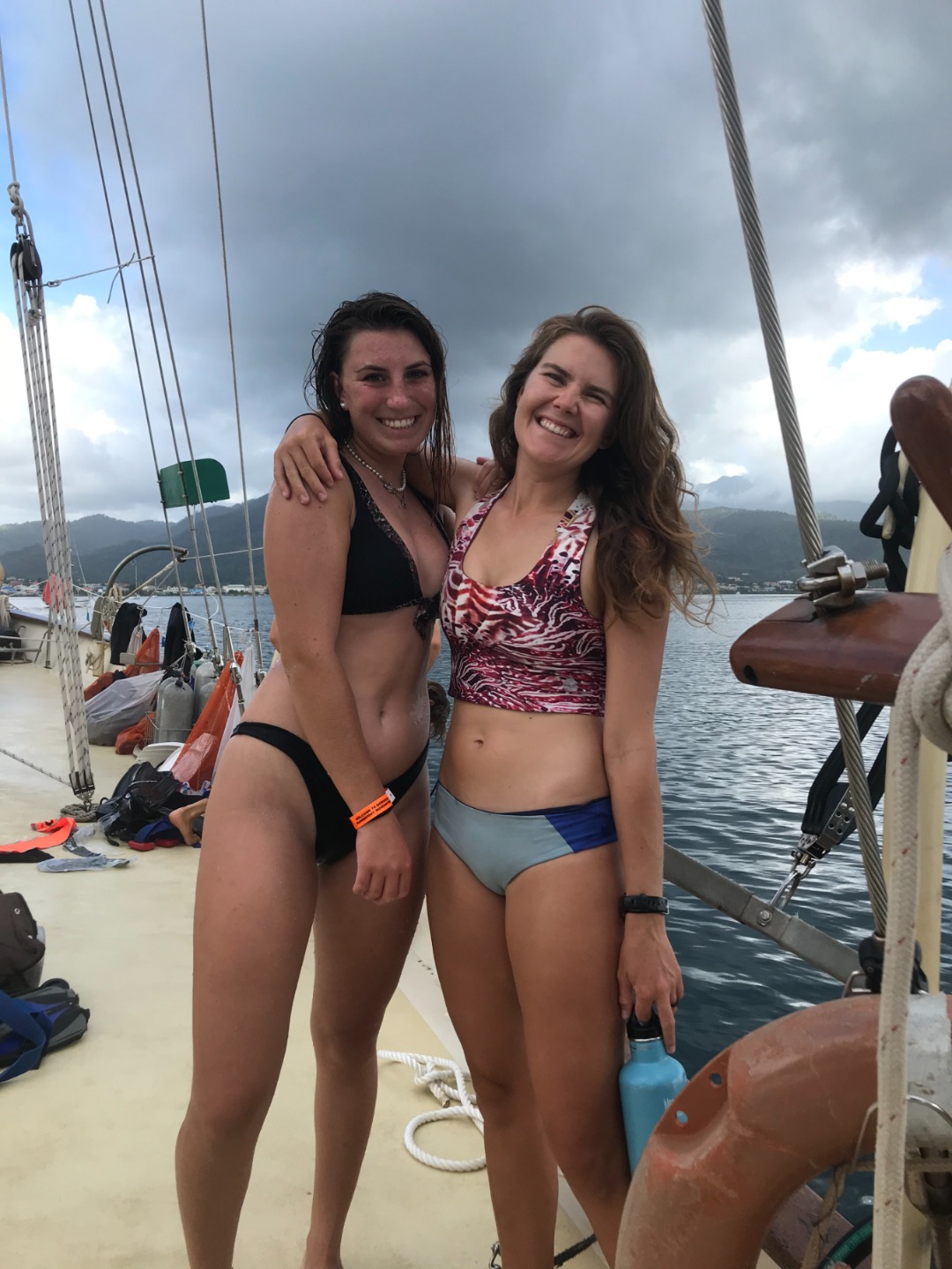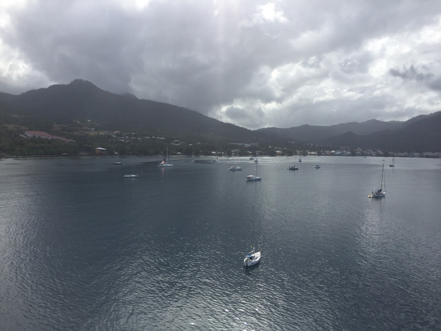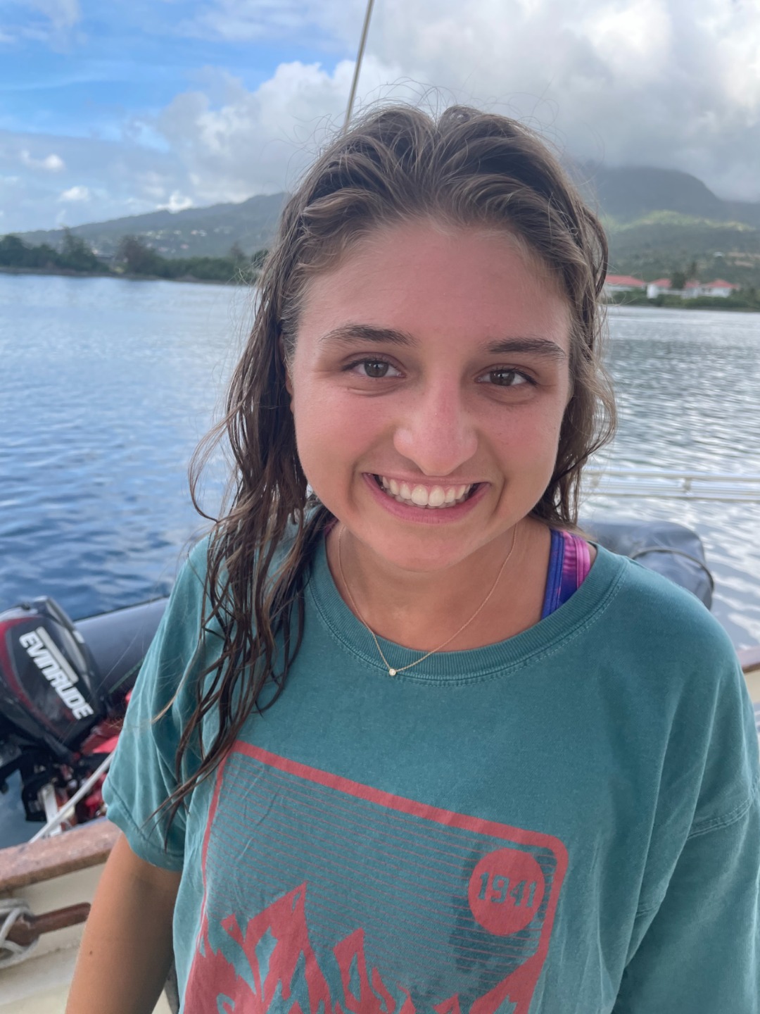 As the bay we are anchored in for our quarantine here in Dominica can be as flat and smooth as glass, Addisen and I got up early (6 am) to do some freediving practice. Some of the others want to join but sleep won them over. Johnny, who was on anchor watch, also acted as our surface support and watched from the boat. Addisen hopped in, and before I could hit the water, she was off on her first descent to the bottom; she may have an addiction. We got some great dives down to the ocean floor below, where our anchors lay at 12 meters (40 feet), and Addisen has now realized she has the ability to hold her breath for 1 minute and 22 seconds! Super impressive! We were even treated with a squad of squid who was out for an early morning hunt, flashing their colors.