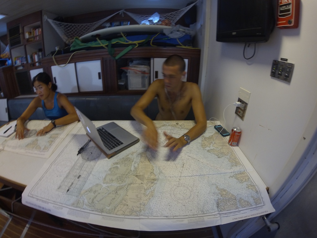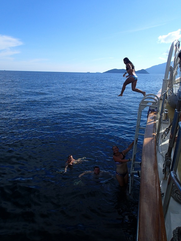 After lunch, we had a very heated Oceanography class about marine law. We all got a card that had a different role in it, and we acted out the roles in a game where we learned about the balance between fisheries and legislation. Things got a little intense as people got pretty into character. After class, Watch Team 1 was on watch from 2 until 6. Isabella, Charles, Alec, and I did some science for our research project. We took a break from science for a while when we got to jump into the ocean for swim showers, which were so nice. After swimming, we had a surprise practice of all of our safety drills our drills. It started with a Man Over Board Drill (apparently Captain Sam fell off), and then it turned into a Fire Drill while Max and Jack were retrieving our man overboard, and then after a little bit of firefighting, we had an Abandon Ship Drill. Happy to say we saved Sam and Argo and didn’t up to having to abandon them after all. Everything after the drills was back to our normal underway schedule. We had a nice dinner, and then everyone practiced their navigating for the Navigation test in MTE in a couple of days. We should be arriving in Phuket sometime tomorrow morning – I can’t wait!