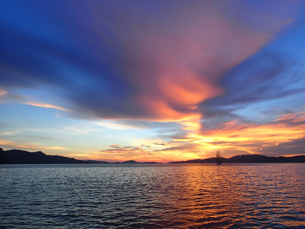 I couldn’t have asked for a better day on my last day as Skipper. (In case you were wondering about the title, it was my squeeze question before dinner.) We have officially entered Thai waters and were going be getting to Phuket sometime tomorrow morning. I don’t think that any of us can believe how quickly these past couple of months have sailed by. We’re already in Thailand – it’s crazy! Today was a pretty busy day underway. We all woke up at our usual seven-ish in the morning and had some breakfast before finishing Passage Prep for Thailand. We left Langkawi, I think, around ten this morning after Marine Biology, where we talked about some pretty cool marine birds. My favorites are probably the Albatrosses. I took a nap after class, as I know a few others did too, and when we got on deck for lunch, we could see Thailand in front and Malaysia behind us.