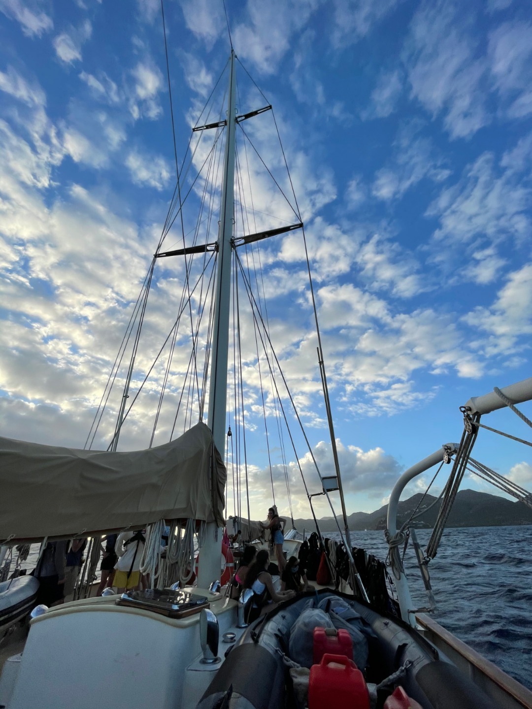 Excitement surged around noon when be began the process of moving Argo from her dock spot in English Harbor to the fuel dock (an incredibly short trip, geographically, but an incredibly long process). Every student was such an avid participant, eager to learn and experience the massive feat of moving a 112-ft boat. Whatever you’re thinking, it’s probably more involved. Out later, lunch, yet another fantastic meal, was followed by another round of moving Argo to her current anchorage in Falmouth Harbor. The feeling of truly being in motion, for the first time, was unlike anything else (in fact, a handful of us are still rather *feeling* this motion. But don’t worry, parents, all in good spirits). On our way, we passed STV Vela, Argo’s sister ship. This moment marked the first time the two ships have been together, an experience that captivated both staff and students alike.