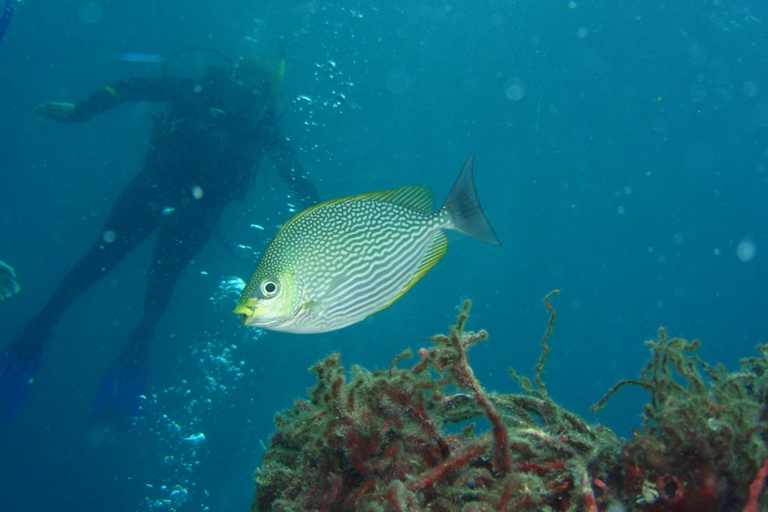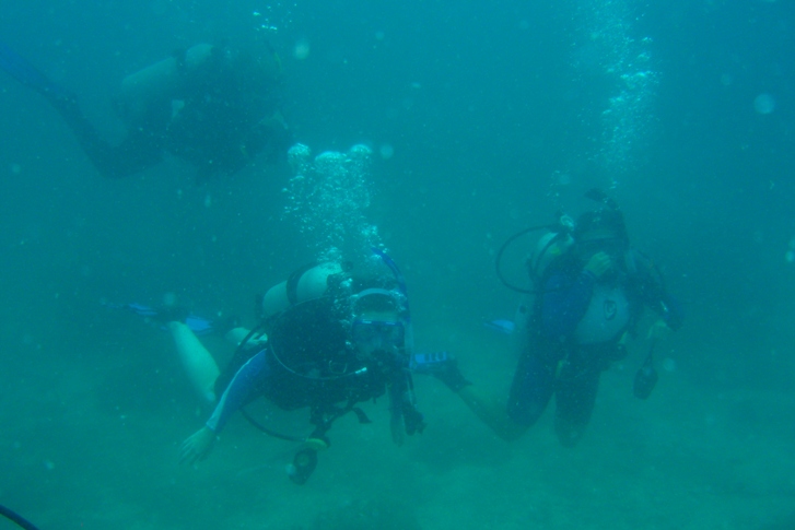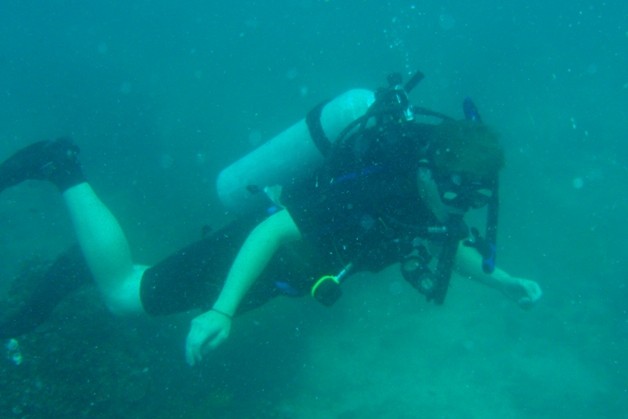 Today started a little later than usual as we motored to the other side of the island. After breakfast, we had an Oceanography class about light and sound in the ocean. Later, we did a dive to get research for our group projects. In the afternoon, we had free time to go to shore, but everyone decided to stay on the boat, which may have been a good decision as pouring rain passed through. During the sudden rain and wind, we had to take down the tarps that give us shade, which can be harder than normal when the wind catches them like sails. To close the day, we have our Basic Seamanship midterm after dinner.