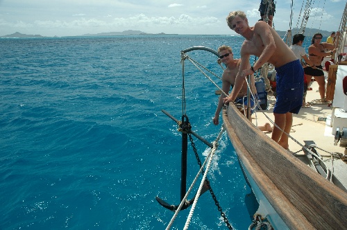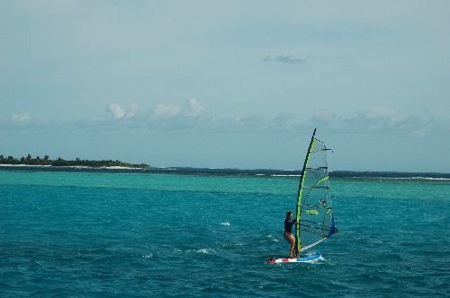 After awakening from our first night on anchor watch, we completed our exam for the Basic Keelboat certification, and we all passed. We are now officially sailors. After lunch, we departed from Union Island to go to the Tobago Cays. The entire time, I was mesmerized by the pristine waters and clear skies. Mike went up to the crow’s nest to spot a shallow reef as we approached the Tobago Cays. Upon arriving in the Cays, some of the crew got to try windsurfing while others explored one of the islands in the Cays. I truly have to say this is my favorite place we’ve been so far and one of the most beautiful locations I have ever been to in my life.