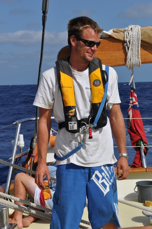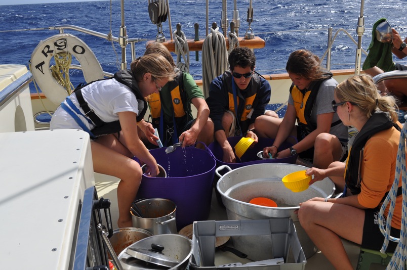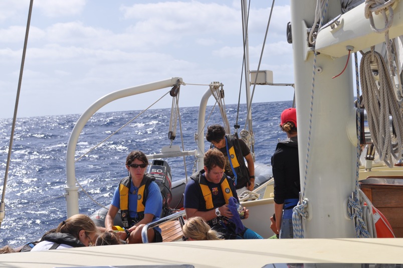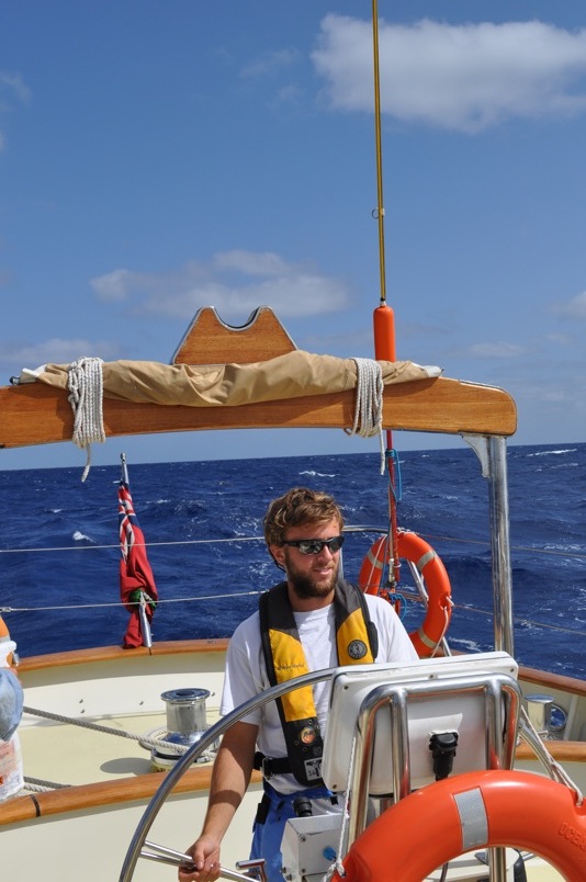 This morning, we awoke to beautiful, clear skies and smooth sailing: exactly the kind of passage day that we here aboard Argo live for. Watch team 3 began our watch at 9:00 am by raising the main staysail and the forward staysail, with Eric and I completing Boomers solo sail-raise challenge on those sails, respectively. Since we will be on a running point of sail (with the wind behind us) for the next few days, we had to put on the chafing gear to prevent the mainsail from being worn thin by rubbing against the stay. I volunteered to be hoisted up in the bosun’s chair, about 30 feet above the deck, to put the chafing gear in place. My life was in the hands of my shipmates Eric and Albert, but I trusted them, and they did not let me down – at least not until it was actually time for that. But oh, how that time came too soon; I would have spent all day up there, swaying in the wind with a birds-eye view of the boat and the ocean around us, swinging from rope to rope like a sailor of old (but not quite a pirate, as I did not have my cutlass with me at the time). It was exhilarating, challenging, and one of the most memorable experiences of my trip so far, but unfortunately, it was short-lived, with no photographic evidence of the event. In lieu of class, this afternoon, Boomer screened the documentary Deep Water, about the first solo-unassisted, non-stop sailing race around the world sponsored by the British Crown in 1968. I have no doubt Boomer showed us the film to prepare us for the upcoming Atlantic crossing for the next three weeks or so. The majority of our time will be spent underway, and the film did an excellent job of conveying the physical and psychological challenges of long passages at sea. Three weeks seems like nothing compared to the 300 some-odd days those sailors spent on the waves, completely alone with not a single port of call. I, for one, am beginning to look forward to the crossing with more enthusiasm than before, knowing that I have only one ocean to cross instead of three and the company of my trusted crew to keep us safe from danger.