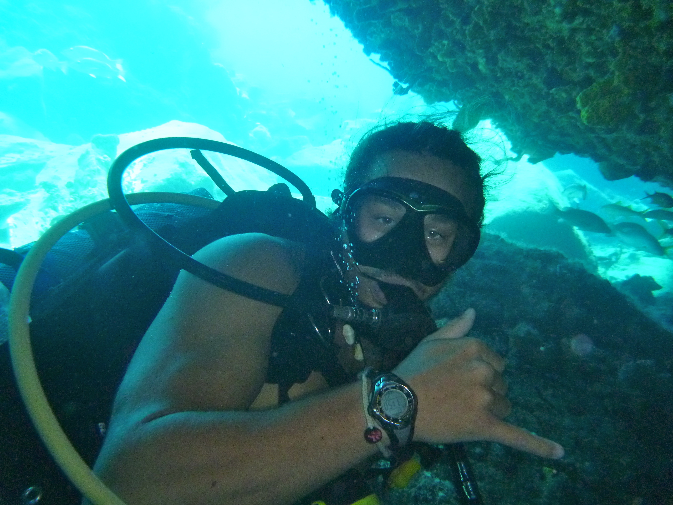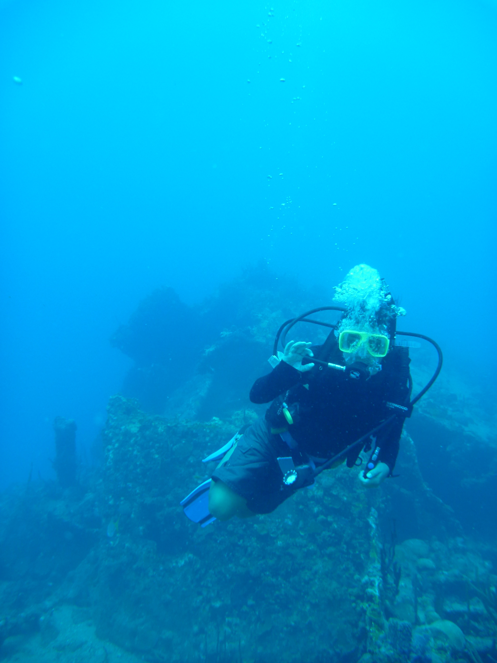 Today is the first of December. Therefore, in true festive spirit, the crew of Ocean Star listened and sang along to Christmas songs throughout breakfast, bringing smiles to sleepy faces. The first order of business today was to explore the wreck of the RMS Rhone. In a Royal Mail steamship in the 1860s, a series of bad luck and bad decisions during a hurricane led to the ship sinking after dropping its anchor, hitting both Blonde Rock. The Can Opener Rock and exploded when cold seawater reached the boiler room. Today, it is a world-famous dive site and national park surrounded by abundant life and plenty of interesting nooks and crannies to investigate. Our two budding Dive Master candidates completed more of their training by setting up the dive site, briefing, and guiding the students around and through parts of the wreck. They did an excellent job under the watchful eye of Tor, our resident dive queen.