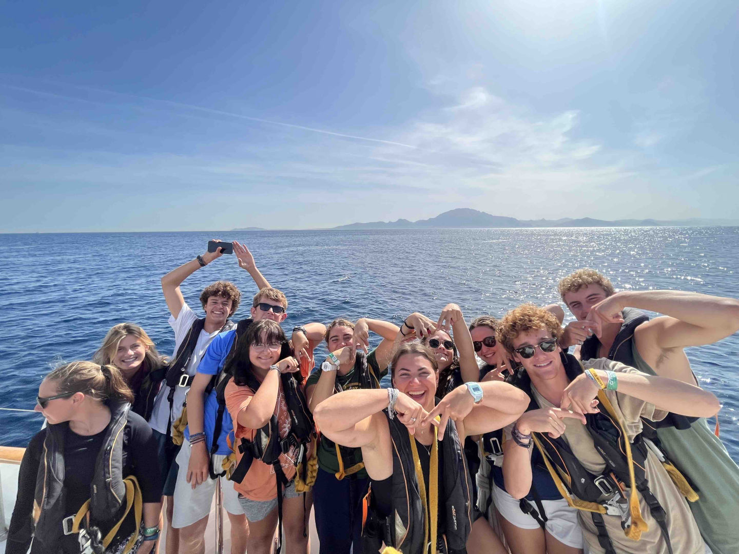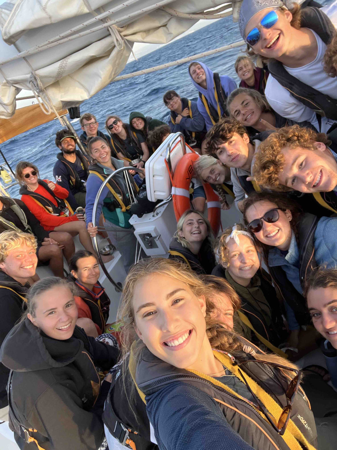 I will briefly run you by our afternoon: Pasta salad for lunch – mmm. Oceanography quiz about the traits of water in the ocean – very fun! Oceanography review for upcoming EXAM – yikes! Leadership class was the final hot air balloon debate, with the finalists being Mr. Keating (Zoe), Forrest Gump (Hendo), Greta Thunberg (Skylar), and the iconic Coco Chanel (myself). Let me just say that the group voted incorrectly… Brief dolphin intermission. Very much needed nap time. That sums up a pretty much typical afternoon on the boat.
