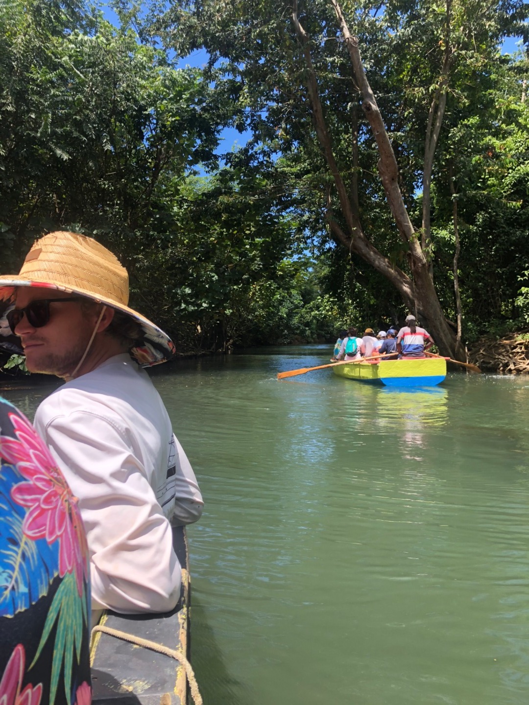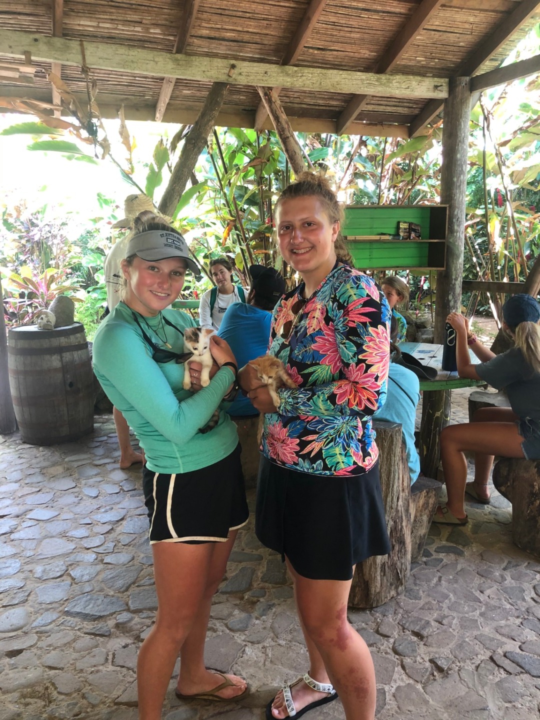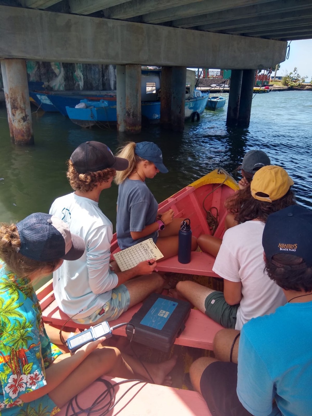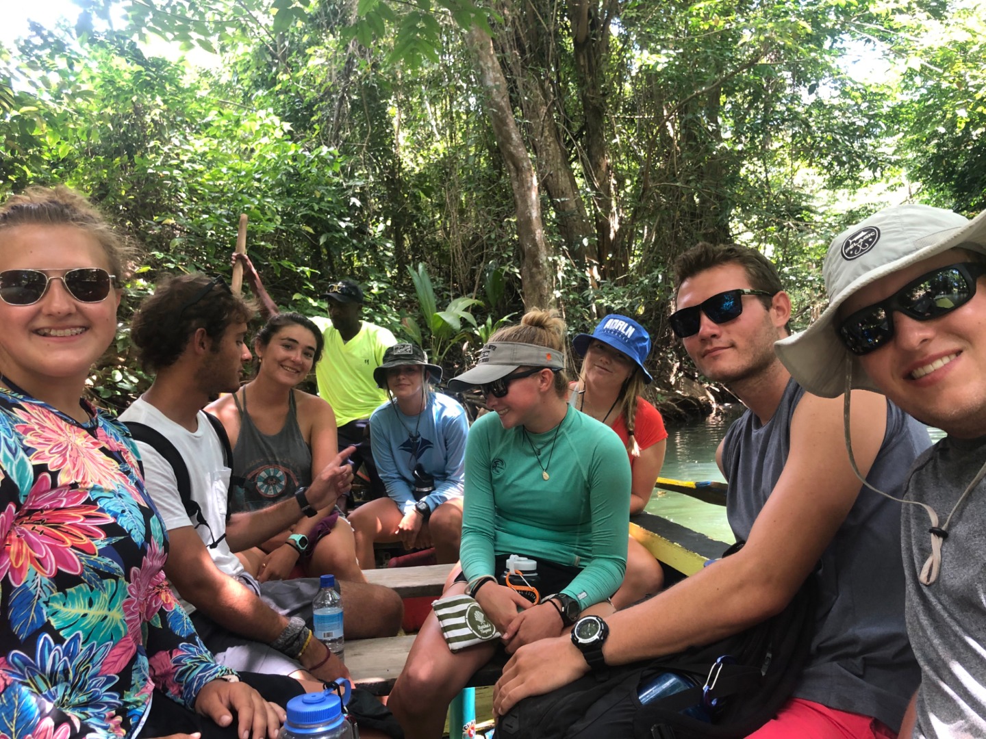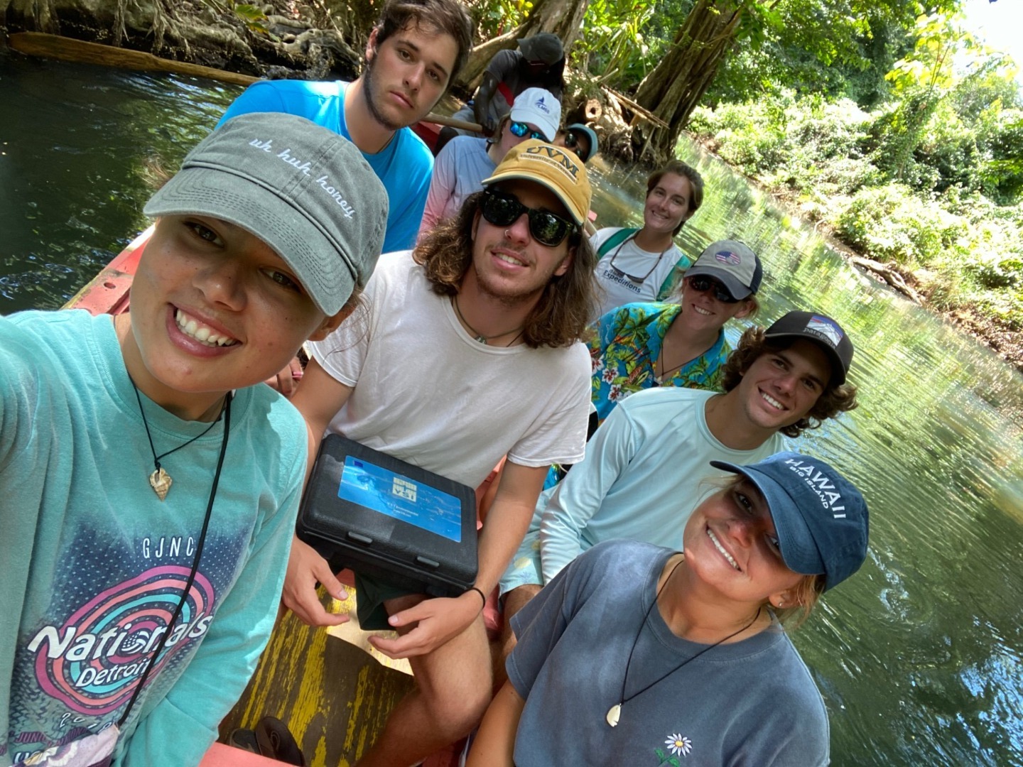 What a great day did we have today on Ocean Star. Our day started out with a peaceful morning, where we enjoyed eggs and sausage for breakfast. Then we had a brief oceanography class and were off to our river tour. This was just an overall great tour for an abundance of reasons. First off, we got to use many scientific tools to help us get info on the turbidity, salinity, and temperature of the water in the river. We stopped in different spots to do that, but once that was over, it was time to sit back and enjoy the beautiful view. We got to see an iguana, which was really awesome, and to be honest; it took me a minute to figure out why everyone was looking at a certain tree but realized it was because of the iguana. We also stopped at a small shack, where it turns out they filmed a scene for Pirates of the Caribbean, and we actually got to go inside it, which was really cool. It was the setting for Calypso’s cabin in the second movie. Then for the first time in what feels like a while, we got to step on land and enjoy a few cold beverages. During this time, we encountered some of the cutest cats I’ve ever seen and just had a great time. Then we returned back to O.C. (what we call Ocean Star) and finished up our EFR training. To finish up EFR we had to go through a couple of scenarios which really showed how prepared you are in case of emergencies. Steve and Lolo were the people we had to take care of, and it was pretty funny walking up from the salon and seeing both of them on the ground waiting to be rescued by us.