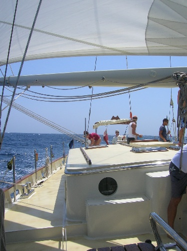 It seems like only yesterday we were first setting sail into the Indian Ocean. But no! We’ve made it all the way to the Red Sea. Today was our first day with the sails up since our last passage, and even though it was short-lived, it was exciting. There are still many tankers around us, and they’re still spamming the radios with talk of monkeys and grandmothers and odd noises, but we’ve come to laugh at them. Mostly. Also, there is a bit of a cold going around, but it’s nothing Anna’s EMT magic can’t handle. In other news, Jay and I had a wrestling match on the chart house, and I won. Also, we caught many fish. None were keepers, but at least the boys are happy.