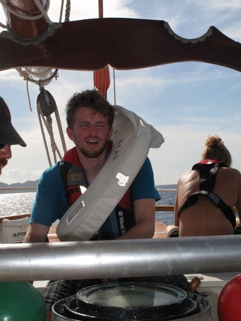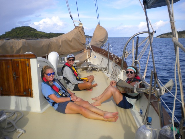 Today, I could really see the crew coming together. We’ve all become much more comfortable with each other and the boat. It’s funny thinking back to the first day when everything was completely new. After the oceanography class in the morning, we prepared for passage from Union Island to Tobago Cays. During sailing, we practiced tacking and trimming the sails. Everyone had to switch jobs each time so the crew would move around the whole boat, learn each line, and sail better. Then we took a break for lunch, but not for long when the captain yelled, Man overboard! For our first unexpected man-over-board drill, we had to quickly muster in the cockpit and then separate into teams with specific jobs. We managed to rescue Oscar, the flotation device that served as our man overboard, with one of the dinghies. When the passage was done, it was time for a dip in the water and dinner time in the beautiful Tobago Cays.