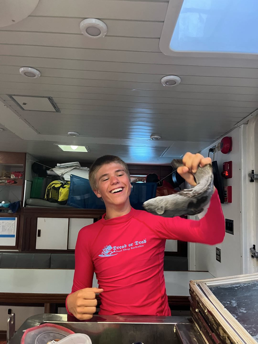 The team woke up today in keen anticipation of a day full of diving and island fun, and it didn’t disappoint. The hour after dinner last night was spent making Argo dive ready, which entailed getting the SCUBA cylinders out the laz, hanging BCDs on the lifelines, and putting the sails to bed.