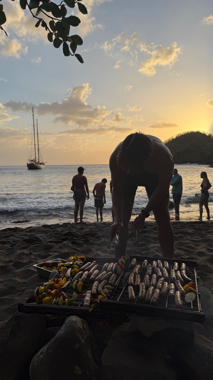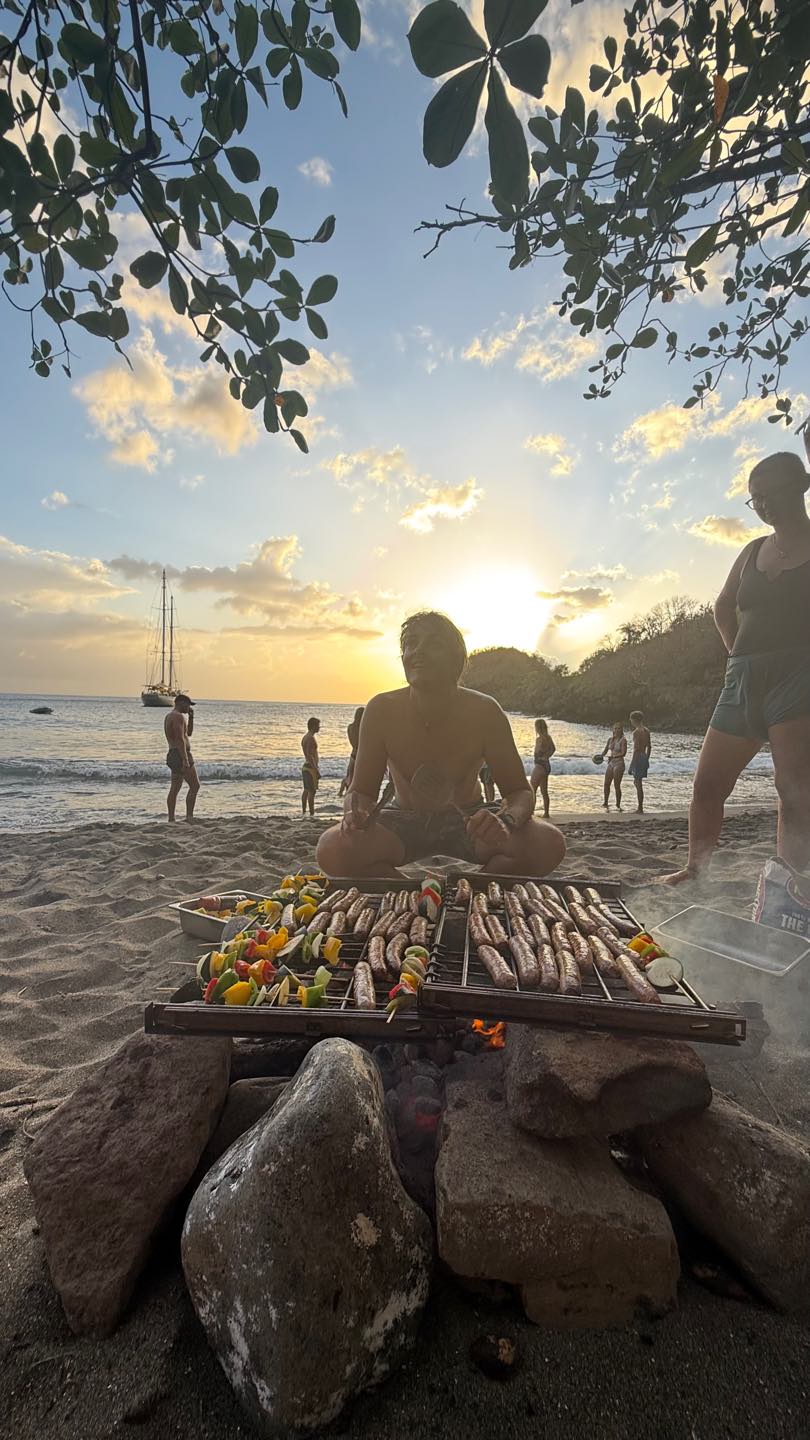 Waking up in Petit Bayhaut was amazing! It is a very secluded, quiet spot with limited phone signal and a calming atmosphere. A handful of staff and students spent the hour before breakfast exploring the local reefs and marine life before Calum delivered a fantastic breakfast of quiche.