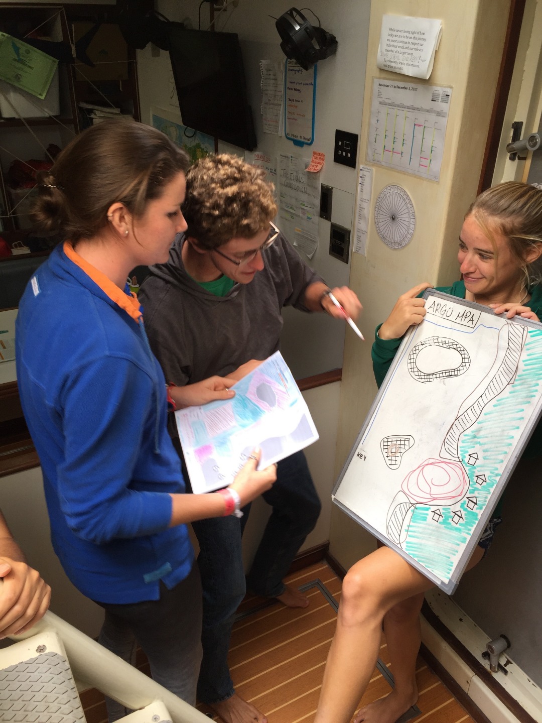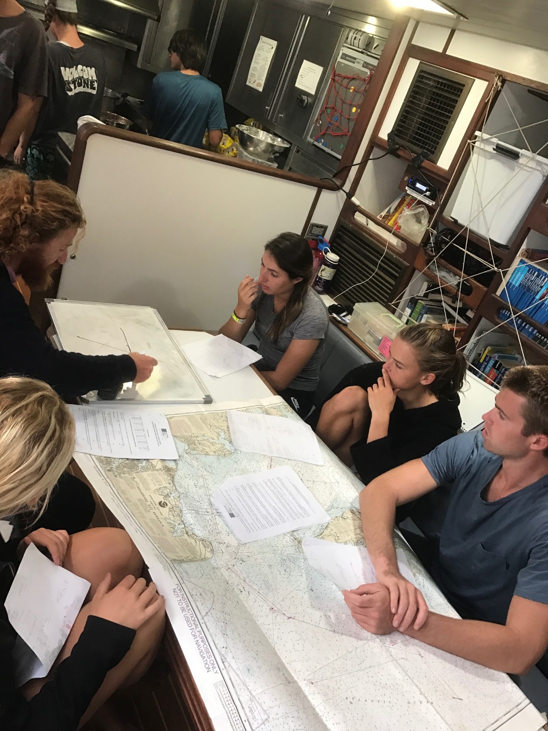 East London has been wonderful, but now we are on to Cape Town, the “real deal” passage that we have all been prepping for! On our last day here, we started the day off with a Sunday morning banana pancake breakfast. Our chefs, Caroline, Nick H., and Nick P., did a great job all day. Some of us stayed on the boat to knock out any work we had to finish and study for finals, while others went out with some of our new friends from the dance last night! Marie, one of the wonderful locals we were lucky enough to meet, took some girls to a little milkshake shop and then took them to play rugby on the beach! It is finally chilly out. So much so that we are all actually feeling like it’s winter back at home. Deck showers, though… not as nice as they were at the beginning of the semester! Freeeezzziinng! Christmas music has been playing over the speakers more and more as we walk through the salon. In Marine Biology class today, we did an activity based on MPAs (Marine Protected Areas) to help us become more aware and learn more about marine conservation. It was certainly eye-opening. Nick P. had a fun day on land for his birthday, from what I have heard. He was excited to receive a homemade peach and apple pie made by Lindsay to end his day! Tomorrow we all plan to get underway to our final destination bright and early, before breakfast, to try to avoid any poor weather that may be ahead. This upcoming passage will definitely be a rough one, but we are all aware that it is our last. We are prepared to finish strong and end on a high note! We will enjoy the last boat checks, the plotting, the bow watches, and every other little moment that makes sailing Argo so fun. Enough talking about “lasts and ends.” We have like ten days left, right?! Wow…