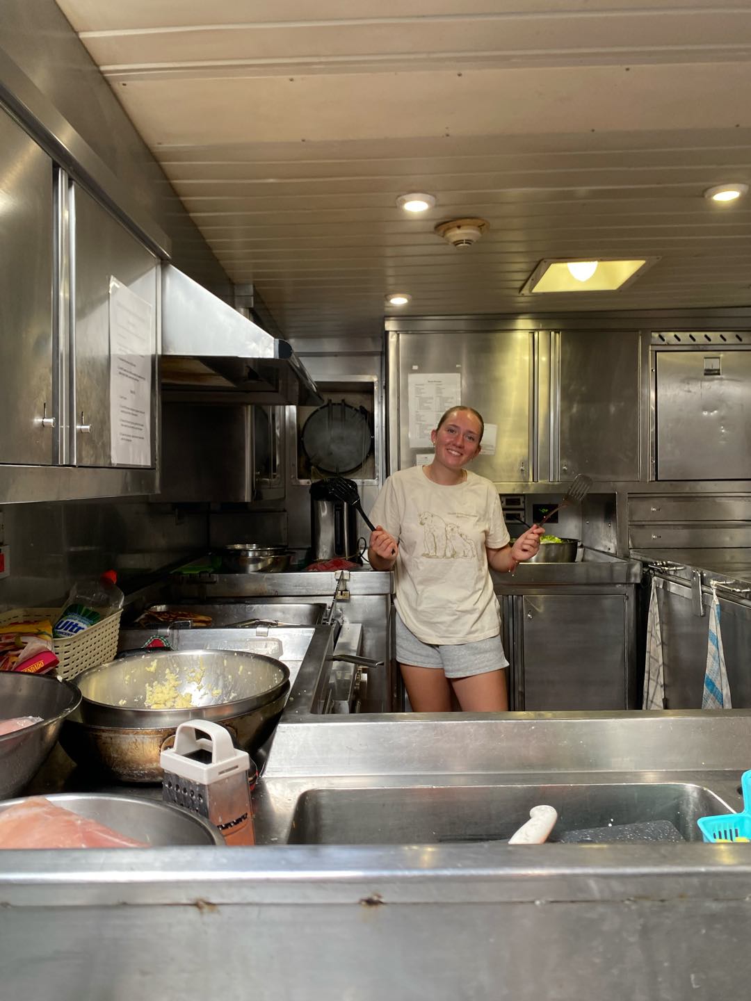 We also center-lined the staysails, took down the main sail, and then sheeted the staysails back out. It was nice to do some sail handling, even if it was to take some down and turn on the motor again. Some of the more verbal people on my new watch team decided that there will be no more nonverbal time during watches, or stoic silence, as Shane likes to put it. Thats going to take some getting used to. After a nice chill rest of watch, we had supper. This was one of my favourite meals I have had this whole trip. Thank you, Amelia, Matt, and everyone else who helped cook.