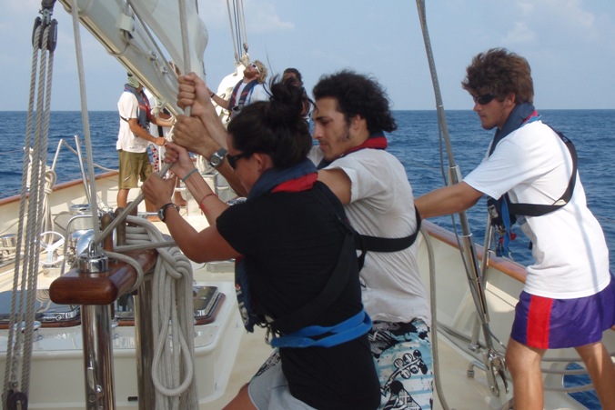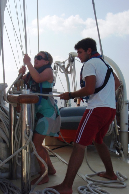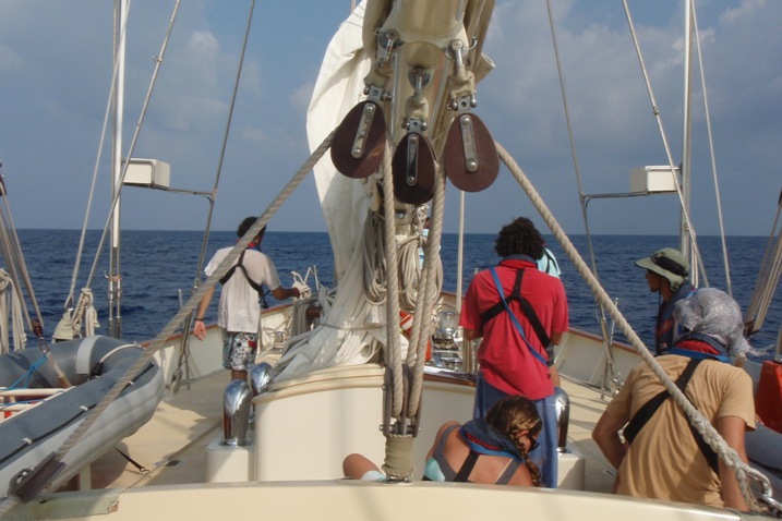 We are making our way south in the Indian Ocean and are experiencing all that the Intertropical Convergent Zone has to offer. The different weather patterns from the Northern and Southern Hemispheres, along with variable winds and the opposing current, have made for a relatively difficult and slow 24 hours. We have made it through the first few squalls and are looking to more favorable conditions ahead. Life onboard has gone back to studying and getting some rest before our watches. The girls of the foc’sle have taken the lead in cabin inspection, a surprise to all. Tomorrow, there are two birthdays, Jessica’s and Kevin’s, and I’m sure we are all looking forward to the cake that is often associated with birthdays.