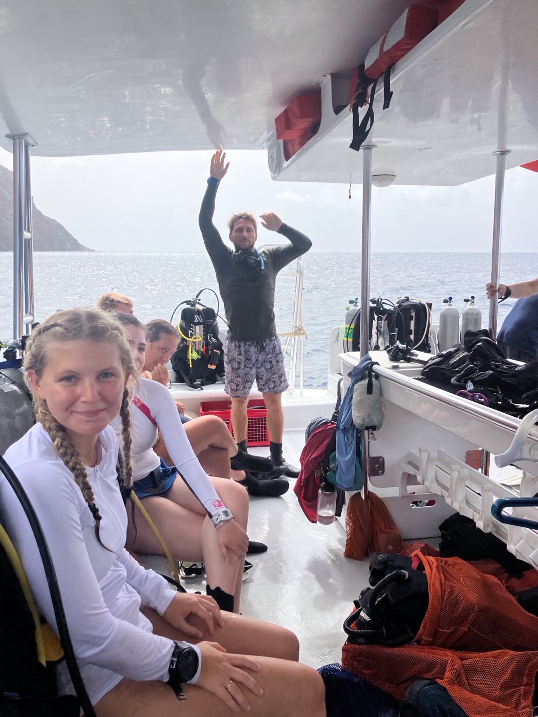 After a successful swap, the morning dive group made their way ashore while the rest of us set off on the dive boat for a two-tank dive. The two sites that we went to were amazing. We also saw the two nurse sharks that live in the area, as well as some amazing elkhorn coral and my favorite fish – the smooth trunkfish. As we all came back together onboard our boats for dinner, everyone had so many stories to compare about what had happened throughout the day, from the locals wed interacted with to little details from each dive. As much as we enjoyed Saba, were all super excited to get underway at St. Barths tomorrow morning and explore a new place!