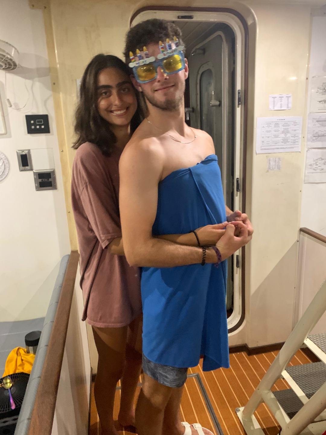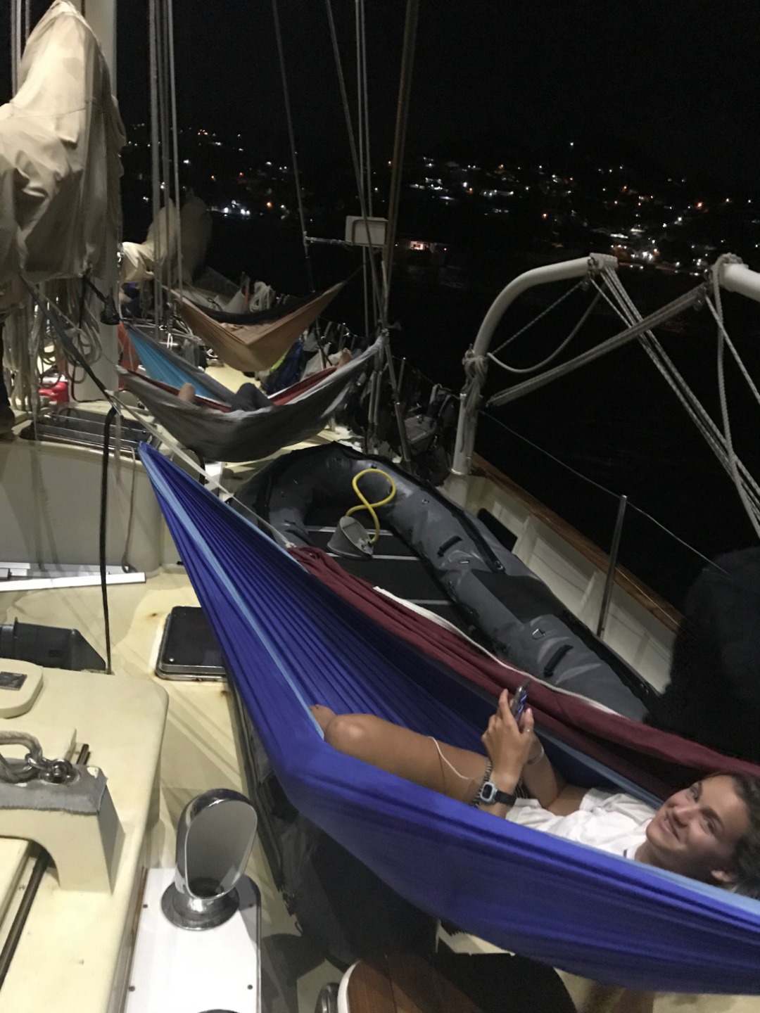 Pictured: Our views in St. Vincent this morning; Thanksgiving prep and birthday cake crew; Anna and Brian; Brian and his birthday cake bakers; alternative views of Argo; hammock city on deck.