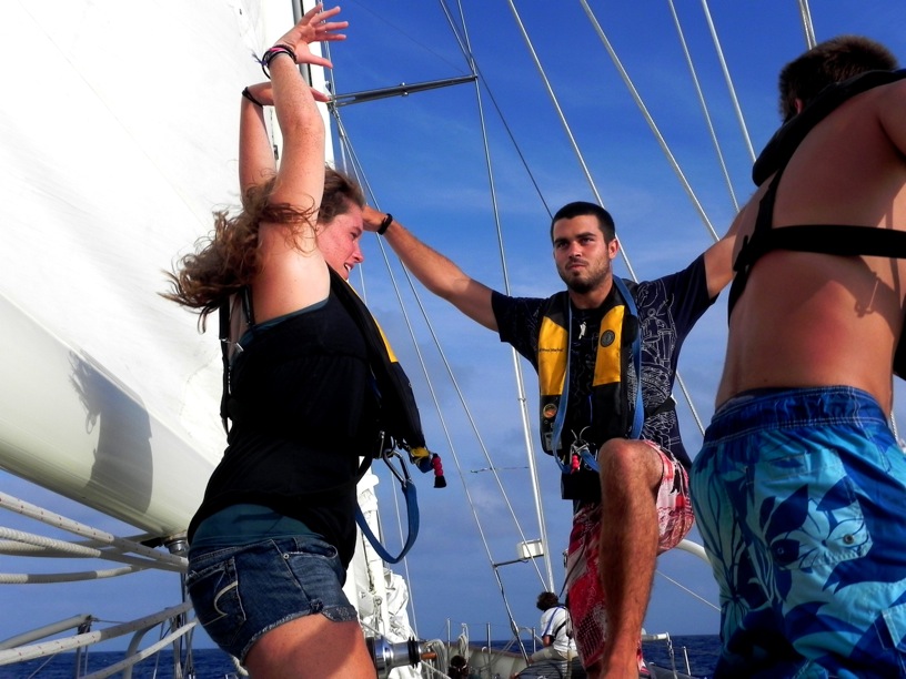 Everyone held their breath today as we made one of our shortest stops for provisioning this trip in Nassau. We arrived in Nassau around 10, with Watch Team 1 scoring yet another land-ho call during their morning watch. Immediately after anchoring, classes were held while Heather and a few others left for provisioning. As soon as they came back, we re-set sails and took off for the BVIs, leaving Nassau behind in the dust as we sailed towards the BVIs and towards the end of the trip in Antigua. We are all very sad about it, but we all still manage to find some humor, for example, this quick exchange: It’s like we just got here yesterday. Dude, we got here (Nassau) this morning! I meant on Argo!