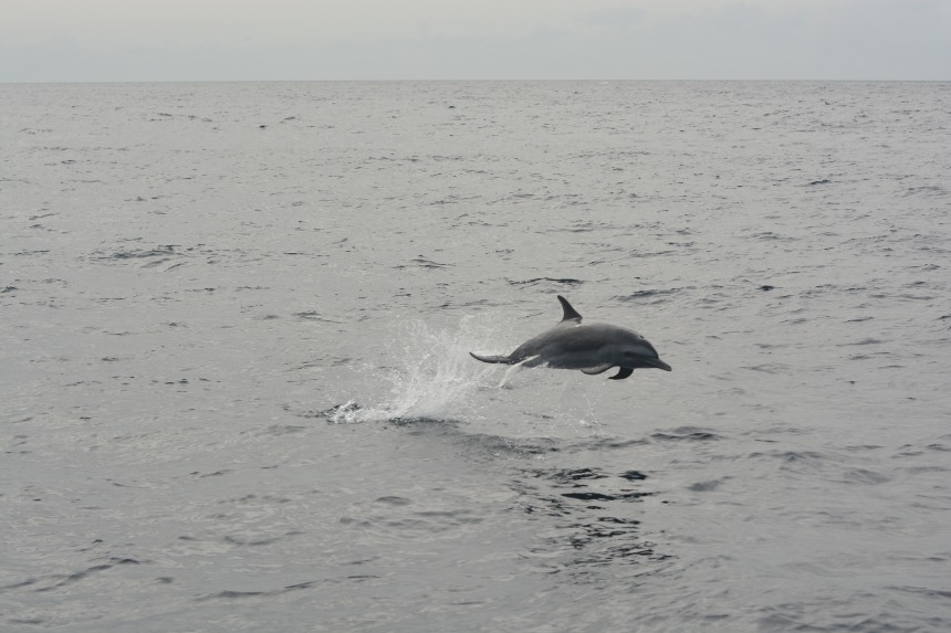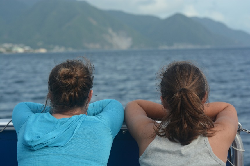 Another early start today. By 8:15, we were at Dive Dominica, just down the road, ready for a morning of diving. The first dive was Witch’s Peak, a wall dive. This dive was super exciting because it was a good bit of our crew’s first wall dives! Everyone was stoked after the dive because we were fortunate enough to see a lot of cool sea life, like frogfish, eels, sea turtles, and balloon fish. The second dive was called Champagne because it was located over a volcanic area. This dive was particularly fun because of the bubbles (hence the dive site name) and warm sand from hot freshwater being pushed up from beneath the sediment. After diving, we all made our way back to Ocean Star. Some of us ate lunch on shore while others opted for a sandwich lunch on board. After lunch, some shipmates went to explore the town, while the majority of the crew spent the rest of the afternoon on a whale-watching tour. Despite listening to the hydrophone to track down the sperm whales, we were unsuccessful in our quest for whales. Not even a whale dance brought them our way. However, we were lucky enough to see hundreds of Pantropical Spotted and Spinner dolphins. The pod stayed with us for about 30 minutes, and some of our crew were able to get some awesome pictures. Big thanks to Dive Dominica for taking us out diving and whale watching today! Back on board, we had a great dinner of chicken curry and sat down for the squeeze question. The fun ball is in full roll here on Ocean Star, and everyone is excited for the rest of our time in Dominica. We are almost at the halfway point of this trip. I am excited about more adventures and to continue getting to know this crew.