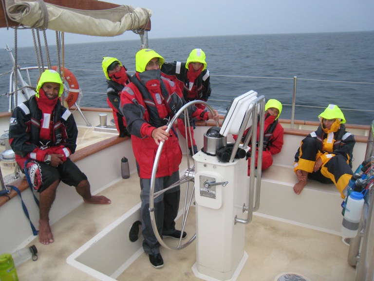 Most of us awoke this morning at barely civilized hours for night watches and were greeted by an altogether unfamiliar sound aboard our vessel. While we have become accustomed to the low growl of the engine on windless days, to the clang and clatter of harnesses being pulled across the jack lines in the dead of night, and to even the joyful whistle of the wind as it dances through our rigging, one noise that’s been decidedly absent is the pitter-patter of raindrops as they fall upon our deck and hatches. In this part of the world, where the temperatures vary only slightly between seasons, the year is divided in two. In Australia, we learned that they call May to October “the dry” and November to April “the wet.” So here we are, on the cusp of “the wet,” and already the decks are freshly rinsed. The crew has been excited at the change, for with little wind, the scorching of the sun becomes somewhat monotonous as we motor along the south coast of Borneo. But today was welcomed with a steady downfall, slowing to a drizzle by morning, and the day remained overcast for the most part. We enjoyed chicken noodle soup for lunch, then had a pair of classes before ringing in the new season with a bit of southern hemisphere spring cleaning down below. The watches will continue through the night; tomorrow, we will greet the dawn with an arrival at the Kumai River.