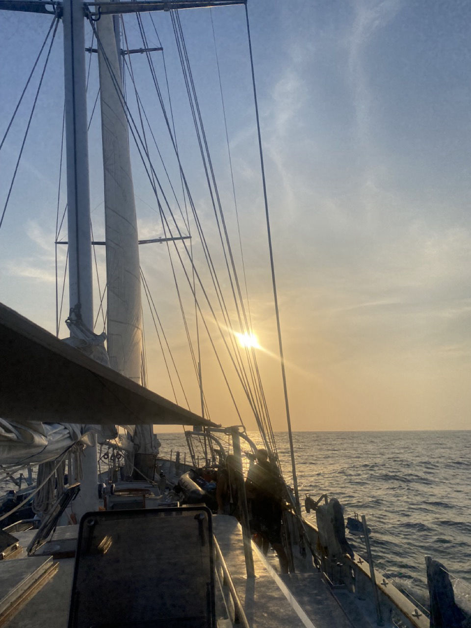 Ok, picture this. We leave Panama for the Galapagos. Two days out, the blade of the prop breaks off. Shoot! On the upside, we live on a sailboat, so we can get home using some fresh ocean breezes. So we’re fine! We sail back to Panama, where Travis meets us with our new four-bladed friend (special thanks to Trav and the office for working miracles to get us a new prop so fast! We’re absolutely HOONIN’ at 8-10 knots with this puppy!) . You may be saying to yourself, “yeah yeah yeah, we know this already,” and you’d be absolutely correct. This is all old news. But here’s the joke: we left Panama again yesterday, so basically, we’re all just living the boat version of Groundhog’s Day. You may be saying to yourself, “Yeah, but now you have a new prop, so that no longer applies,” to which I would reply that you’re right, but up until the moment, we get further than we did the first time, which is to say. We’re just a boat full of Bill Murrays who think they have figured out the key to breaking the cycle, but until the day is over, it’s all just a repeat. So here we are. One day out from Panama, motoring along with no wind (ok, that’s a lie. We sailed for a few hours today), getting back into the swing of passage life and eating some of Nella’s awesome Med toasties and carbonara. Tomorrow afternoon will be the real test. Maybe this patch of the Pacific is a giant hole in the space-time continuum, and we’ll end up back in Panama again in a week. But I doubt it.