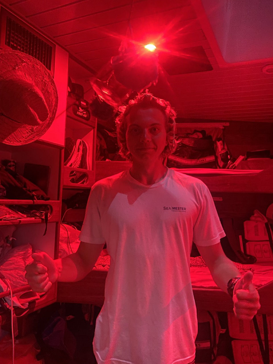 We’ve all become better people over the past week (and by that, I mean sailors), so I’m confident we can wind our way out to those far-flung rocks full of beautiful and crazy finches, hammerheads, tortoises, and marine iguanas. In fact, this delay was actually perfect from a marine biology instructor’s view today. We talked about marine reptiles and specifically the marine iguanas! They are only found in the Galapagos and dive down into the cold water to munch on algae. Obviously, this is problematic since they have to hold their breath while they’re feeding, and they missed the memo on opposable thumbs, so, in a genius move, they actually swallow little rocks to make themselves heavier so they don’t float away while eating. How cool is that?!?! I’ll leave you with that thought for now and get back to watch (we have seen a Wahoo, shark, and possible ray today on watch, so I don’t want to miss anything!).