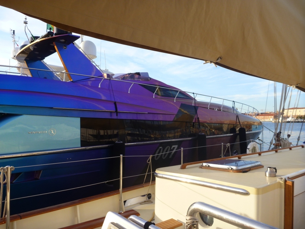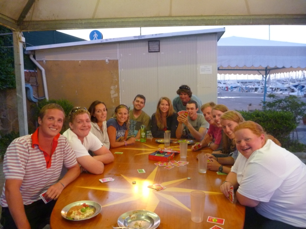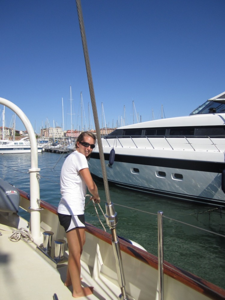 Hello All, Today, after an early morning Science class, we left our comfortable anchorage in La Grazie. I know I will not be the only one that will miss hot showers so nearby. We put up our sails for some stability on the rolling seas and motored the 35 miles to the port of Livorno. Livorno has granted us some very interesting dock-mates. On our Portside is a yacht named 007, and directly fore is an Italian Police boat. It will surely be a personal choice of which boat to jump aboard in case some type of emergency is to arise. Personally, I’m a Bond fan. Although 007 is far flashier than Argo, we have her beat in size… for the first time on this voyage, we are the biggest boat in port. A few people walking the dock have actually lingered to admire Argo, which is usually an act reserved only for mega yachts. After anchoring, we began dinner preparations. The marina has a large grill, so we hauled all the food fixings and made a delicious dinner of hamburgers, salad, and French fries. After dinner, we relaxed by playing a game of Apples to Apples, which turned out not to be as relaxing as we had intended…quite a few mini debates started over which was the correct card to pick or the exact meaning of a word, but it was all good fun. Clean-up took a while, but we jammed to some nice loud music, and everyone was rushing off to bed because we have an early morning tomorrow, so I shall say goodbye and goodnight.
